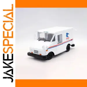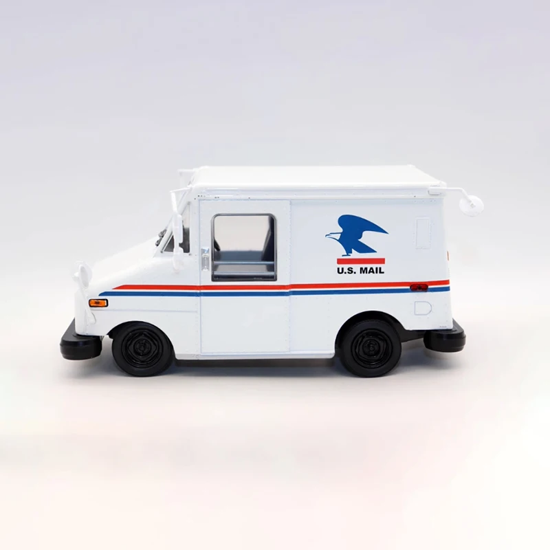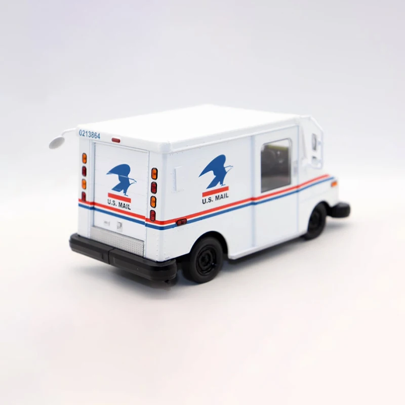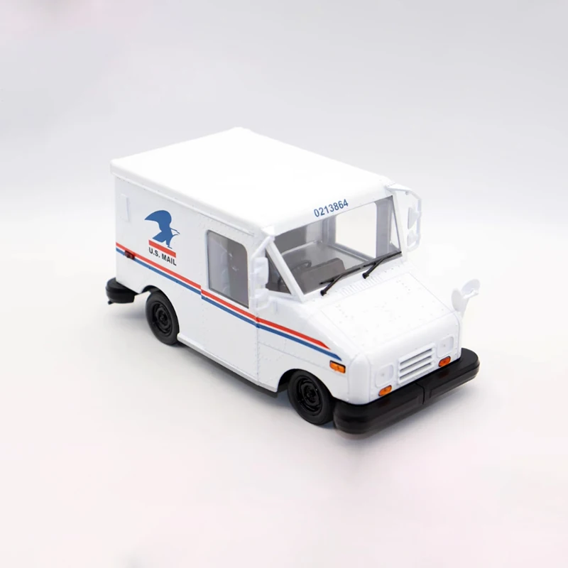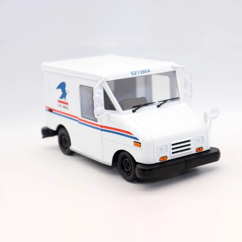 - Constructed from alloy and ABS materials for durability, with fine exterior details mimicking a true postal delivery van.