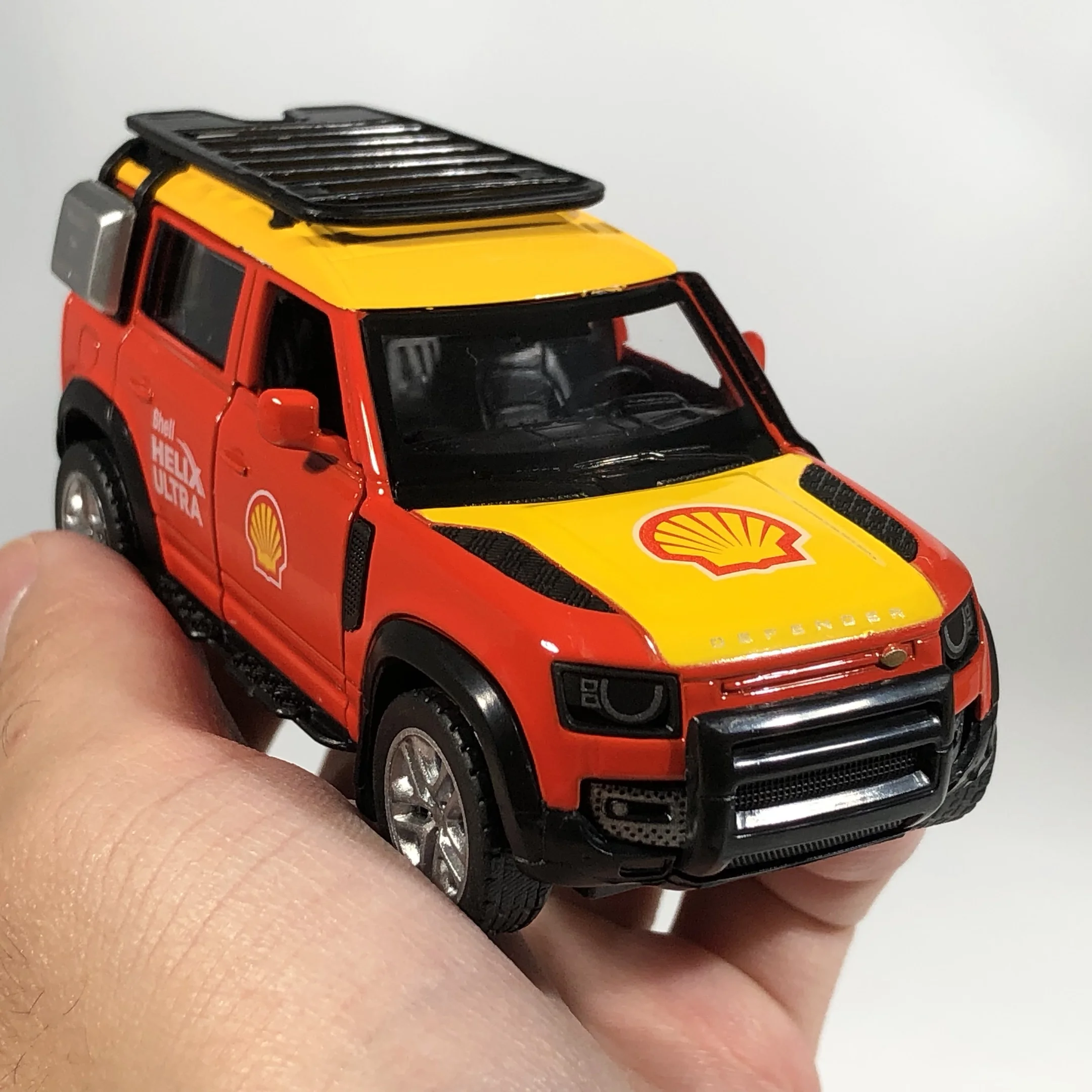 - Authentic vintage details include round silver headlights, a centered silver VW emblem, realistic black rubber seals around side windows, and a split black roof that mimics a sunroof or roof panel—adding to its nostalgic charm.