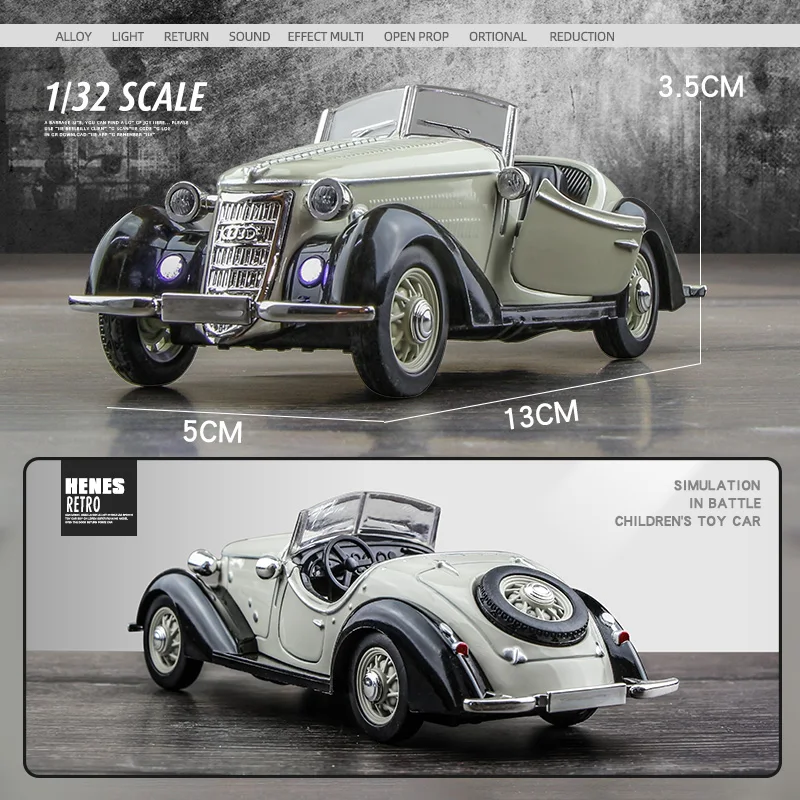 - Designed to a 1:32 scale, it provides intricate details like a vertically slatted grille, round headlights, and curved fenders that replicate the iconic Wanderer W25K accurately.