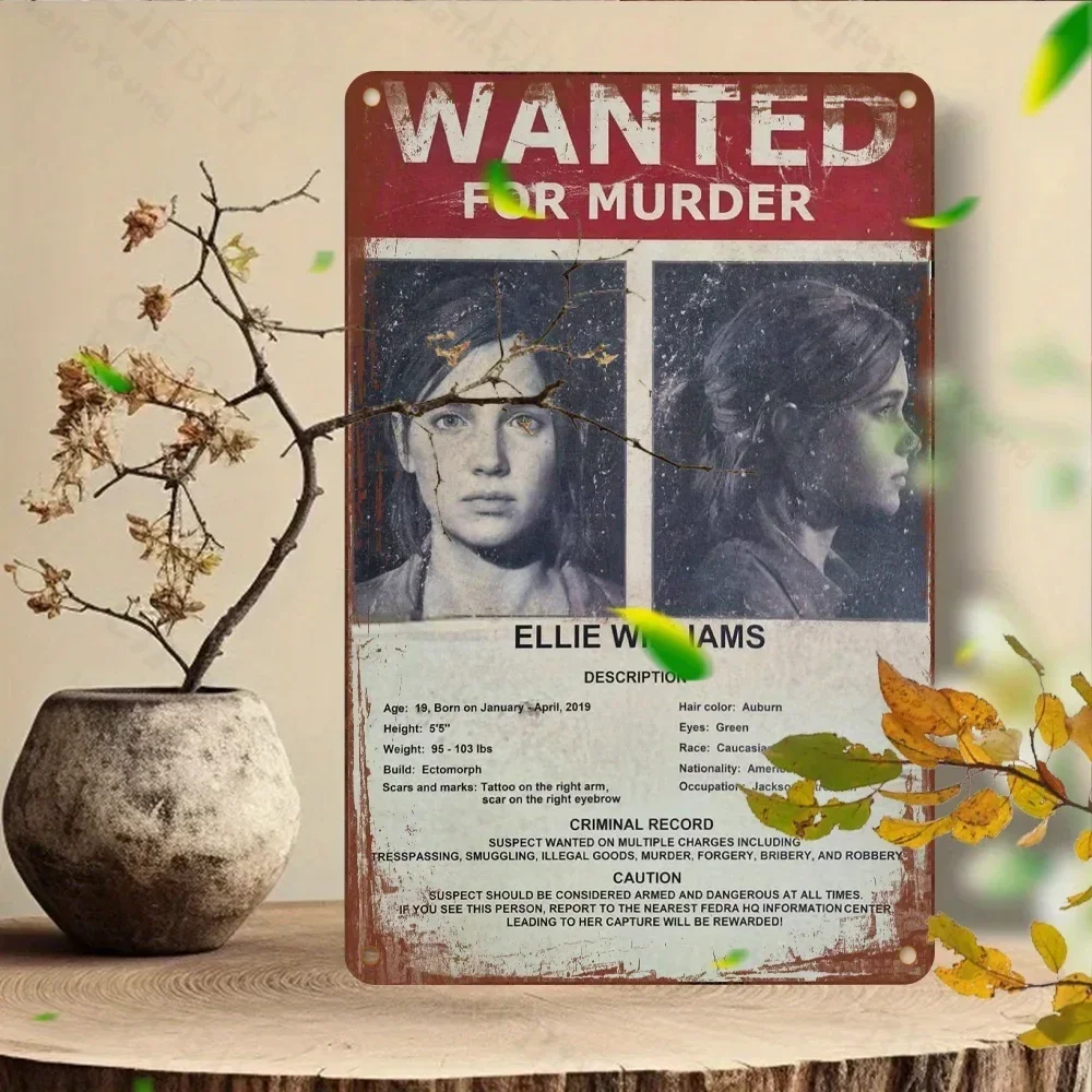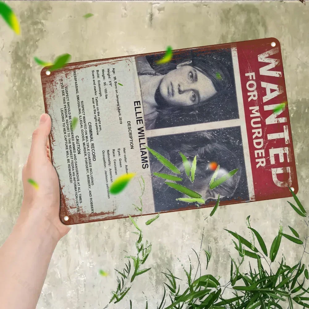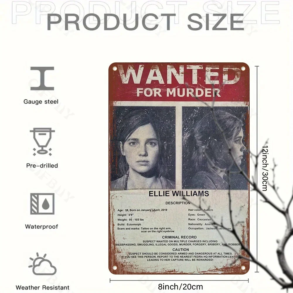 Imagine adding a bold, eye-catching touch to your space with this Vintage Wanted for Murder Ellie Williams Sign. Crafted from durable aluminum and UV printed, it offers long-lasting vibrancy and waterproof protection. Perfect for enhancing the ambiance of your home, bar, club, café, or bedroom, this sign seamlessly blends vintage charm with modern durability. Its sleek design invites conversations and admiration from guests who appreciate unique decor pieces. Easy to install and maintain, this metal plaque brings a rebellious, nostalgic vibe to any environment, making it a must-have for enthusiasts who love collectibles with a story. Transform your space today with this striking piece that embodies attitude and style.