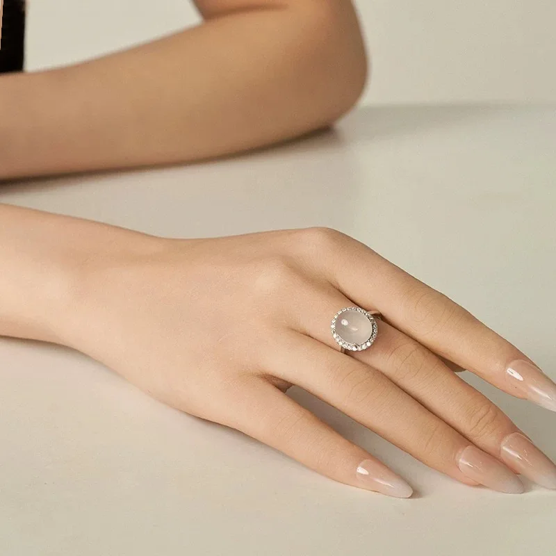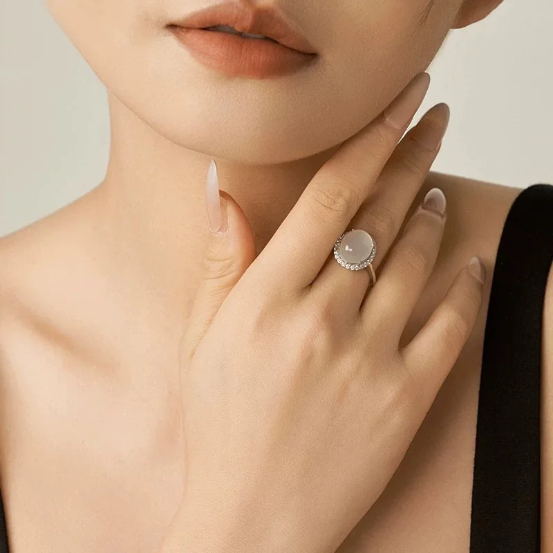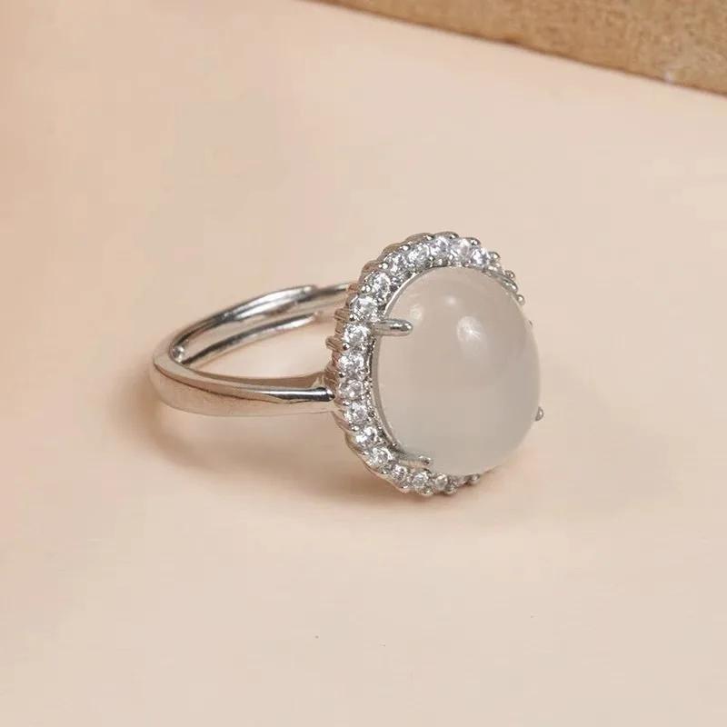 Experience timeless elegance with this vintage-inspired women's ring, perfect for adding a touch of sophistication to any outfit. Crafted with a sleek, minimalist design, it features a 2mm wide bezel-set oval acrylic stone that resembles a white opal, offering a semi-translucent and smooth convex surface. Surrounded by delicate, sparkling rhinestones, the ring exudes subtle shimmer and refined charm. The thin, shiny silver-colored band, crafted from zinc alloy with a sterling silver finish, perfectly complements the retro and geometric style. Versatile and suitable for various occasions, this ring is an ideal gift or personal accessory for expressing your unique style. Its design ensures comfort while making a bold, elegant statement.