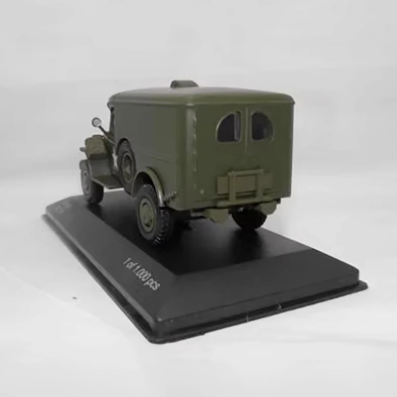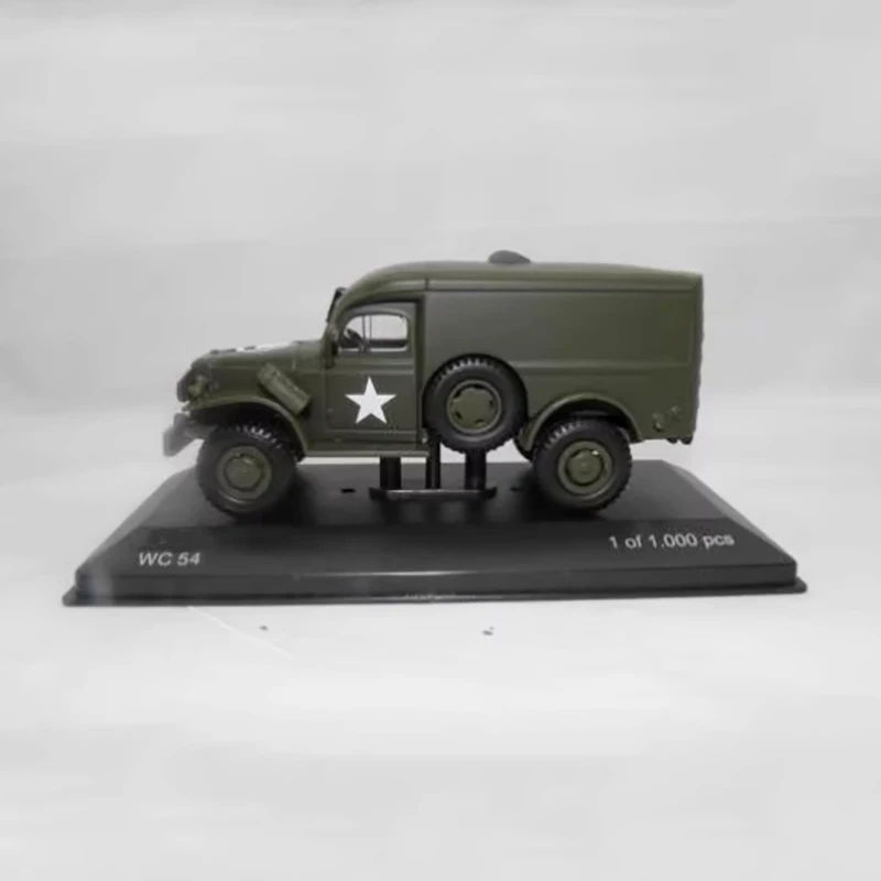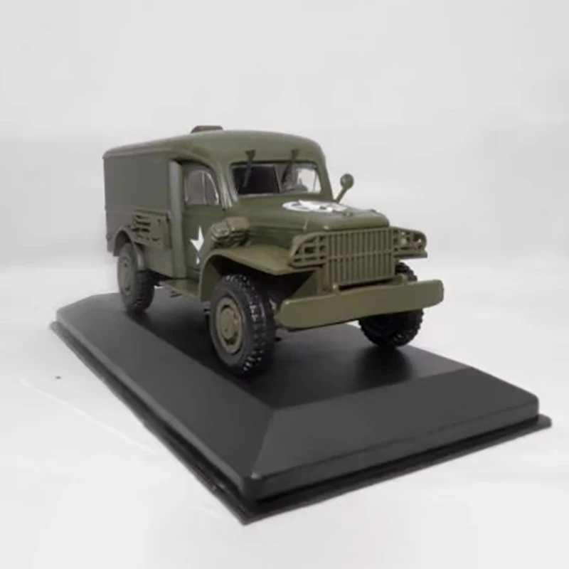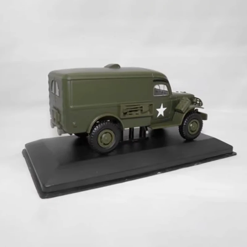 This 1:43 scale diecast model of a vintage military truck measures approximately 10 x 3 x 5 centimeters, crafted from alloy and plastic for collectors and display enthusiasts. Featuring a sleek black matte finish and authentic details such as a rounded front hood, grille, small rectangular windshield, and a prominent white star decal on the side, it captures the rugged, utilitarian style of WWII-era vehicles. The sturdy wheels have simple hubcaps with realistic black tires, emphasizing durability and realism. Designed for display, gifts, or static decoration, it is suitable for ages 14 and above and offers a refined, vintage military aesthetic for enthusiasts seeking a striking addition to their collection.