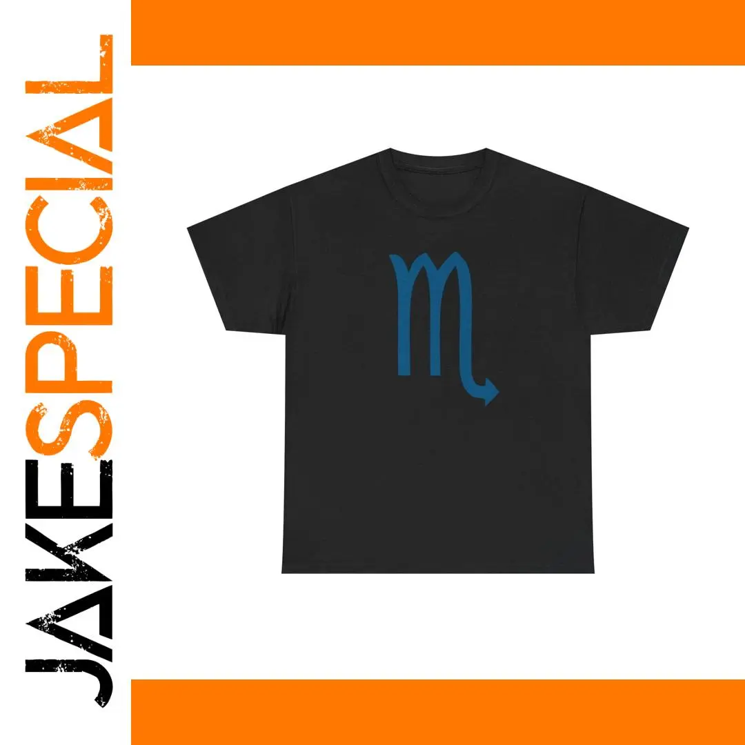 - Design features a prominent blue Virgo zodiac symbol with a looping ‘M’ shape and a downward arrow, printed centrally on the chest for a striking visual impact.