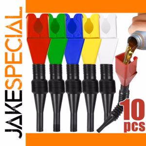 Elevate your refueling experience with this set of ten foldable fuel funnels, expertly crafted from high-quality ABS plastic. Featuring vibrant, glossy tops in red, green, blue, yellow, and white, each funnel combines a sleek rectangular scoop shape with a flexible, ribbed black tube that extends up to 11.5 cm for easy access in tight spots. Compact and portable at 4.5 x 4.5 x 11.5 cm, these versatile tools are ideal for car and motorcycle refueling, engine oil, and fluid transfer tasks. Perfectly suited for auto enthusiasts who value convenience, durability, and colorful style in one essential package.