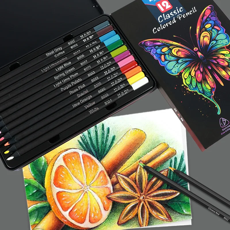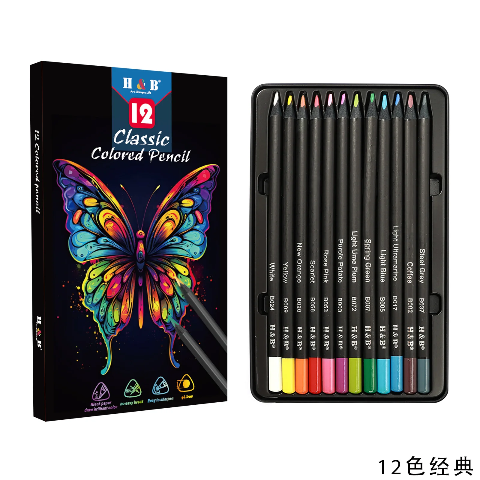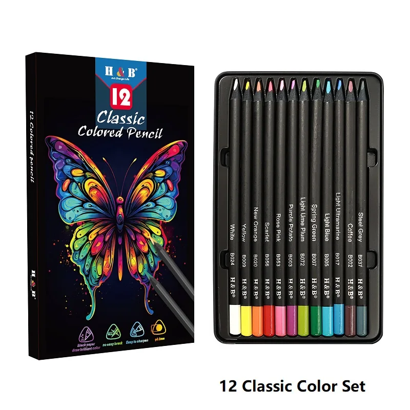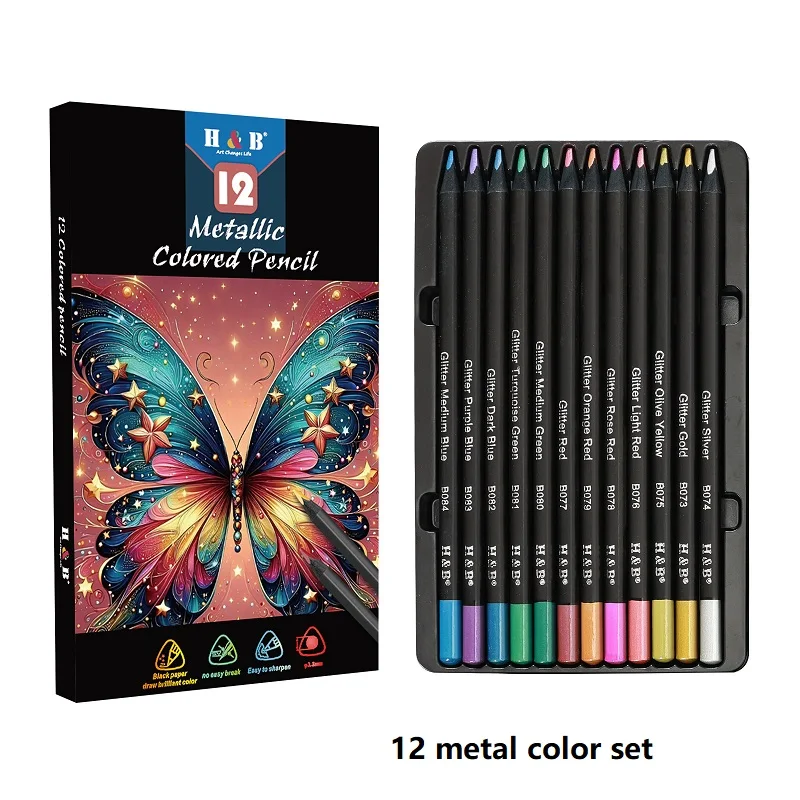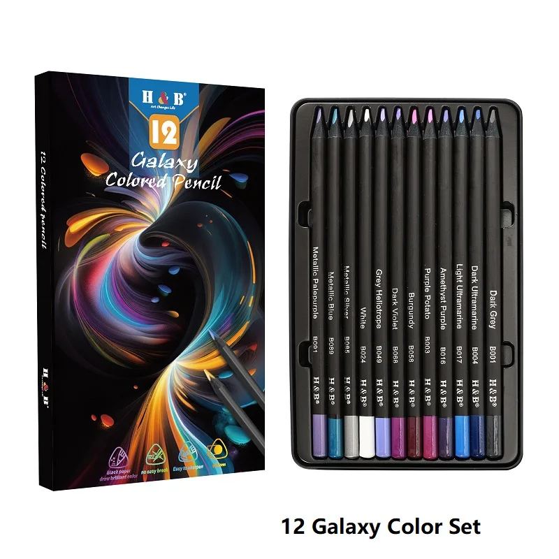 Imagine unlocking endless artistic possibilities with this set of 12 oiled colored pencils, designed to inspire artists and enthusiasts alike. Featuring six stunning types—Classic, Figure, Galaxy, Fluorescent, Metallic, and Glitter—each pencil boasts a sleek black wooden body and a bright, exposed lead of 3.3 mm diameter, perfect for detailed drawing, sketching, and vibrant coloring. The high-saturation colors and soft lead enable smooth application and vivid effects, whether you're creating luminous galaxy scenes or shimmering metallic finishes. Packaged in a durable iron gift box, this set is ideal for a wide range of users, including children, students, professional painters, jewelry makers, engineers, and clothing designers. Elevate your art with this versatile, high-quality toolset.