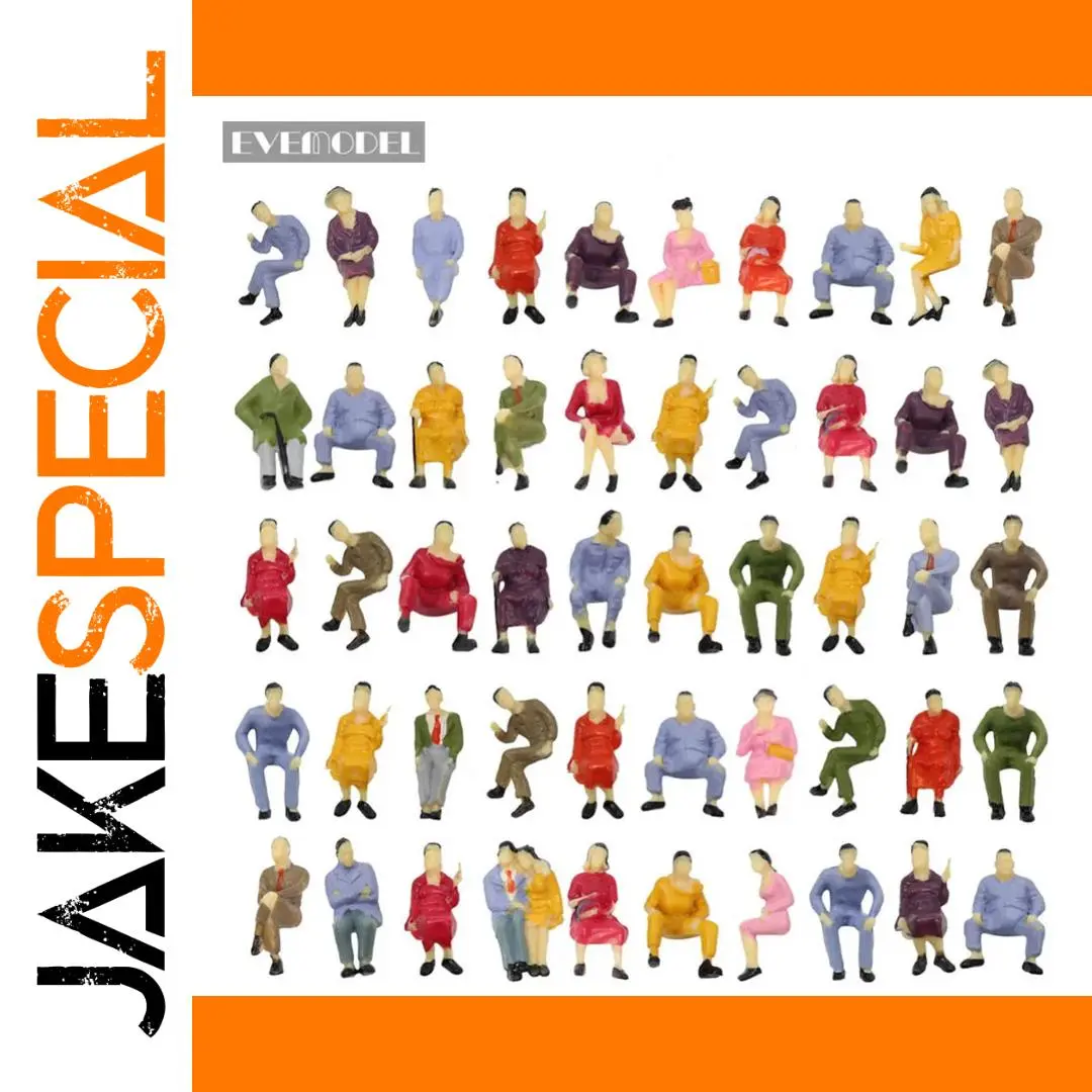 - This set includes 50 seated passenger figures, each approximately 35mm tall, scaled perfectly for 1:43 O scale model railway layouts for realistic scene creation.