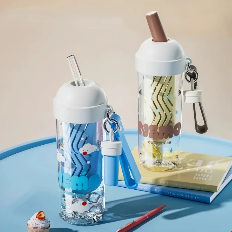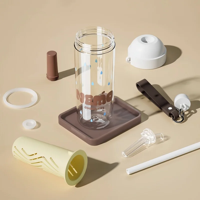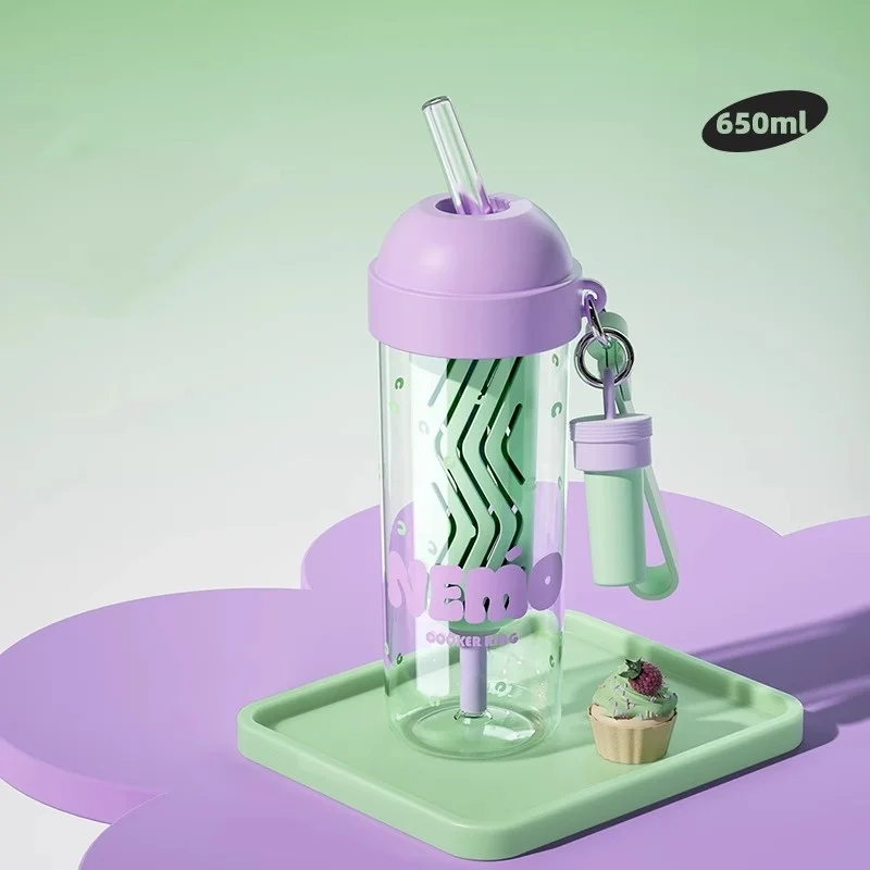 Experience a vibrant and functional hydration with this 650ml Tritan water bottle featuring a transparent, shock-resistant body free from bisphenol A. Decorated with playful green and gold four-leaf clover patterns, it exudes a fresh, youthful vibe. The leak-proof cap with sealing silicone ring, large-diameter food-grade PP straw, and removable PP kettle container for brewing or filtering tea ensure convenience and hygiene. The bottle includes a matching silicone strap and a mint green figurine cap to prevent loss and dust. Dimensions: bottom diameter 7.1cm, mouth diameter 6.7cm, height 26.9cm. Available in Sapphire blue, Mocha brown, and Green—perfect for enjoying refreshing drinks outdoors.