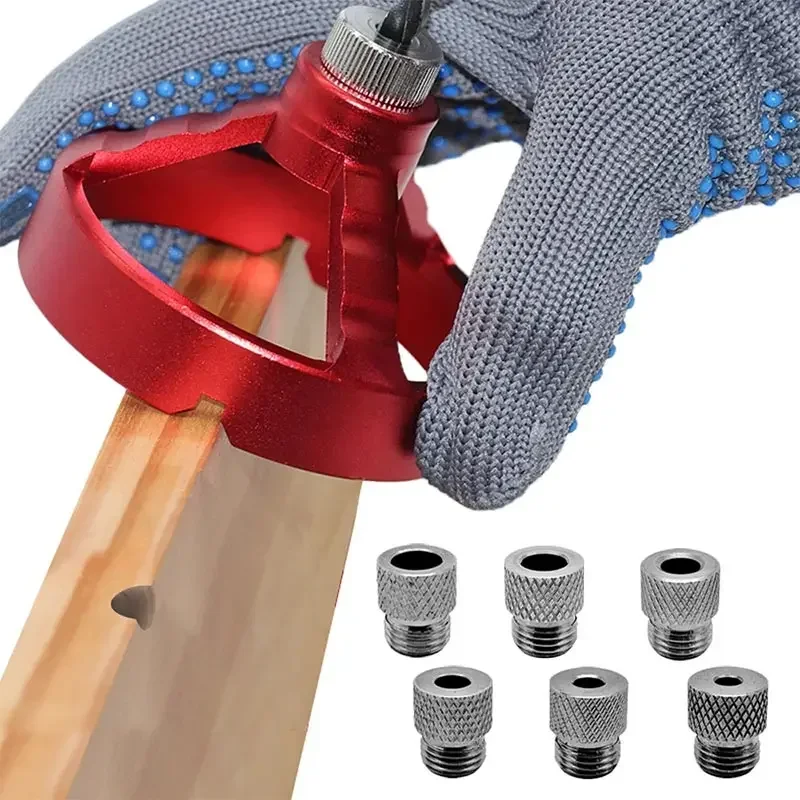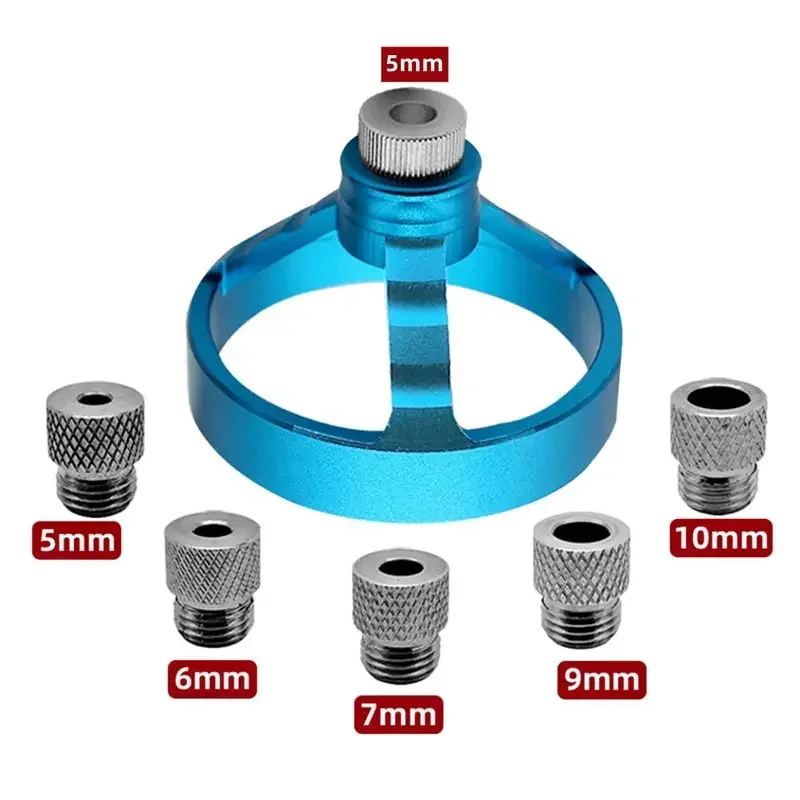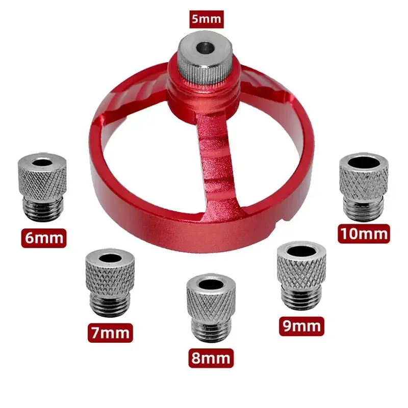 Enhance your woodworking projects with this durable Straight Hole Punch Set, featuring aluminum alloy construction with anodized, rust-resistant surfaces. It includes six metal drill sleeves of wear-resistant sizes: 5mm, 6mm, 7mm, 8mm, 9mm, and 10mm, ensuring precise hole punching for edge splicing and drilling. The set measures 8cm in length, weighs 210g, and features a comfortable aluminum-copper alloy handle. Available in vibrant blue and red colors, this professional-grade drill punch locator set is perfect for both DIY enthusiasts and experienced craftsmen seeking accuracy and reliability in their woodworking tools.