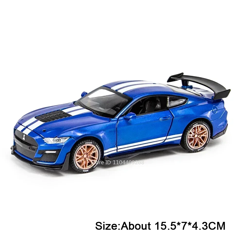 Imagine placing this striking blue Ford Mustang Shelby GT500 on your shelf or workspace—it's more than a model; it's a symbol of power and style you can admire every day. Whether you’re a serious collector or a passionate car enthusiast, this detailed replica elevates your space with its craftsmanship and dynamic design. With its interactive features, it provides endless enjoyment and admiration. Don’t miss your chance to own this eye-catching piece that embodies speed and elegance—bring home the thrill of the GT500 and cherish it for years to come.