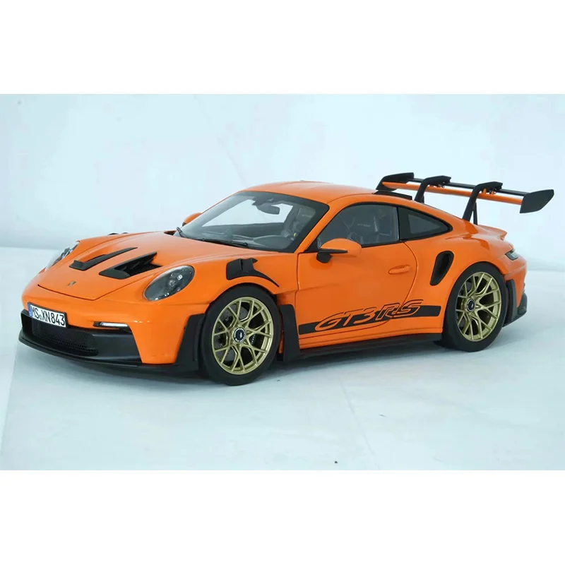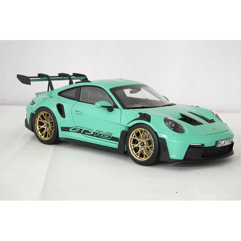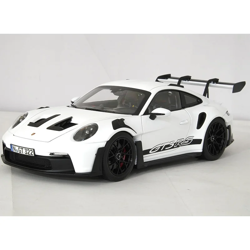 Bring home the precision and elegance of a 1:18 scale Porsche 911 GT3 RS replica, measuring approximately 26 cm long, 11 cm wide, and 7 cm high, crafted from durable alloy. This detailed collectible features functional front wheels linked to the steering wheel, two openable doors, an openable front hood, and four-wheel shock absorbers, showcasing remarkable realism. Its bright blue finish, accented with black detailing and white multi-spoke alloy wheels, captures the sporty essence of the iconic model, while the large rear wing enhances its race-inspired aesthetic. Ideal for display and collection, this high-quality model is designed for enthusiasts aged 14 and above.
