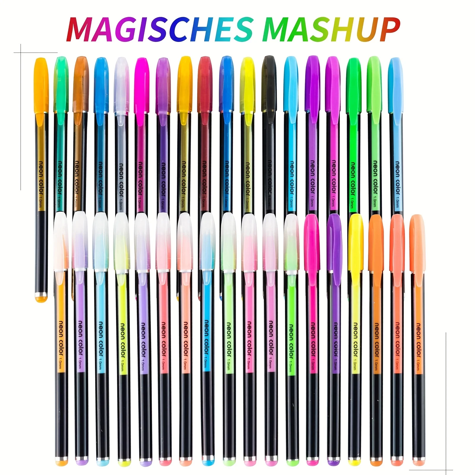 Immerse yourself in a world of color with this set of highlighter pens, perfect for enhancing your creative and organizational projects. Whether you're highlighting notes, doodling, scrapbooking, or sketching, these pens deliver precise 1.0mm fine lines with vibrant gel ink that stays put. Made from high-quality plastic, each pen boasts a sleek, shiny finish with clear, color-matched caps featuring clips, allowing you to attach and organize easily. Available in 12, 24, or 48 vivid shades, this collection offers a broad spectrum of colors to suit every need. The transparent barrels highlight the ink color for quick identification, and the durable design guarantees comfort during extended use. Elevate your stationery collection with this versatile set!