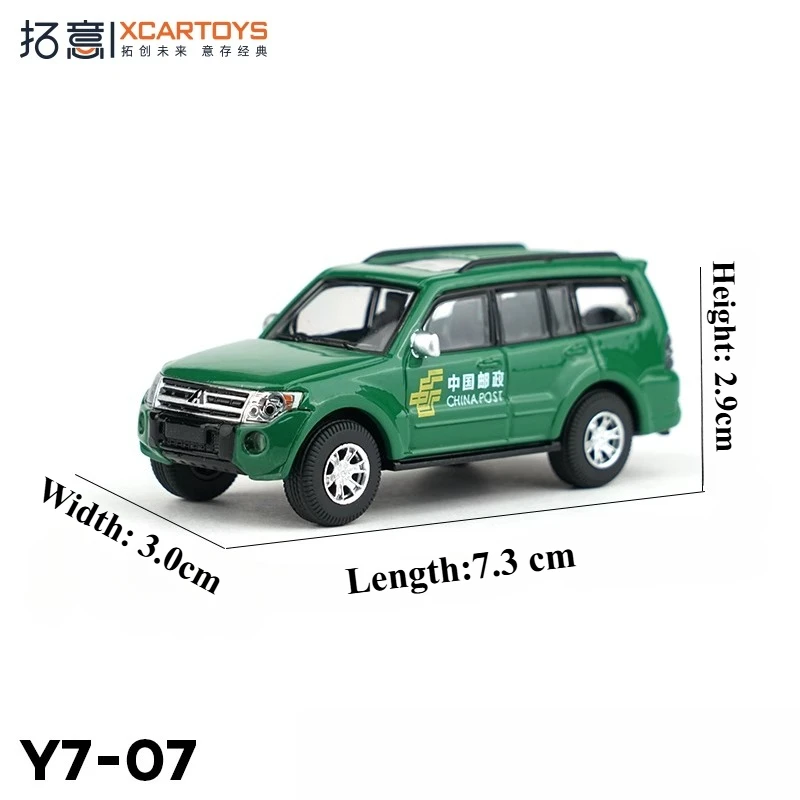 Imagine owning a meticulously crafted miniature of a practical postal vehicle that exudes durability and realism. This 1:64 scale diecast car, painted in a striking Y7-07 vivid green, captures the essence of a reliable service vehicle. Its solid metal construction offers a substantial feel, with a glossy finish that highlights detailed features like the chrome grille, precise headlights, and bumper. The dark gray-tinted side windows and accurately molded side mirrors enhance its authentic look. Decals on the sides showcase the distinct yellow and green “Post” logo, adding to its collectible appeal. The model’s realistic proportions, slightly elevated ride height, and detailed rims with black tires make it perfect for display or as a unique gift. Your collection will feel complete with this dependable, detailed miniature.