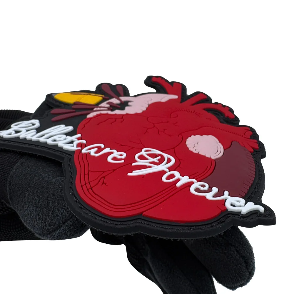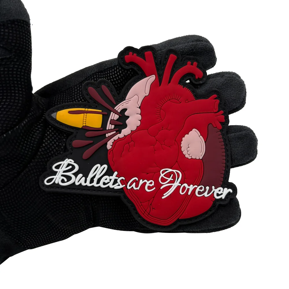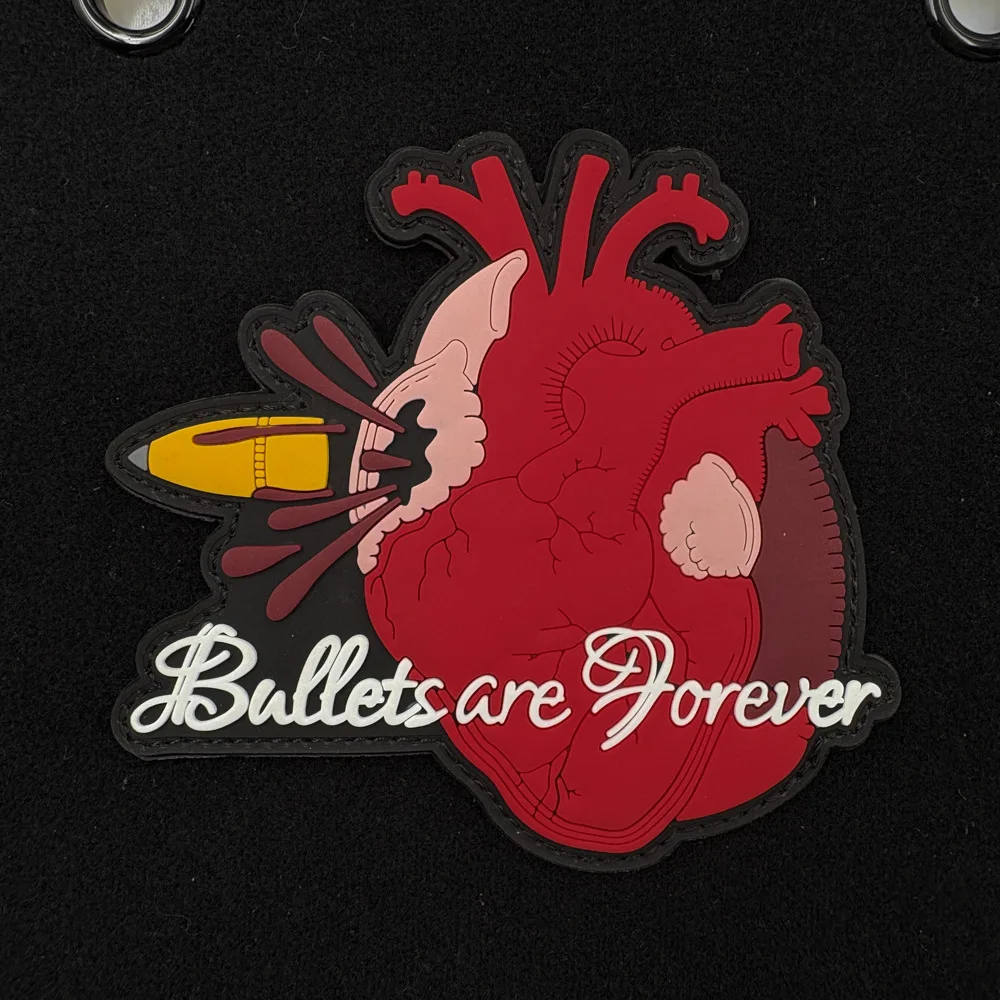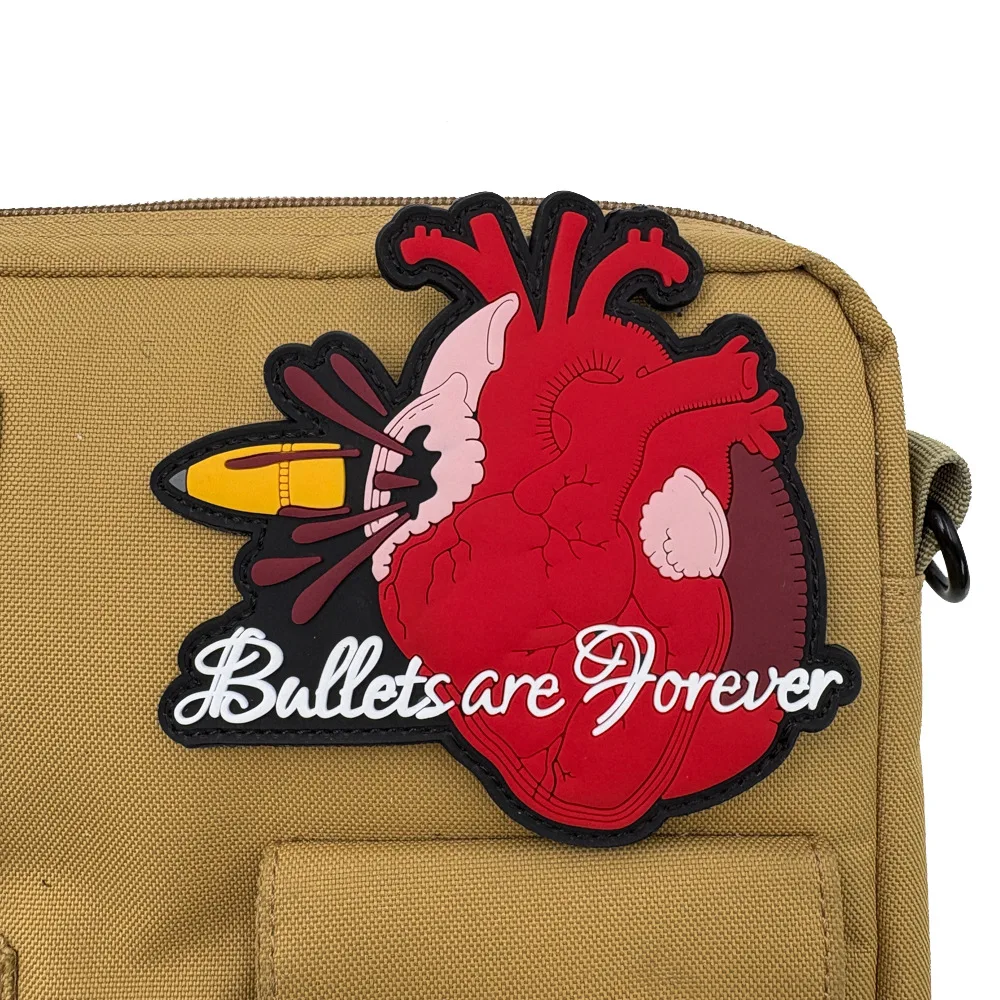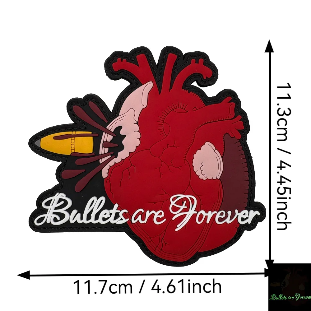 Keys features of the this Heart Bullets Are Forever PVC patch