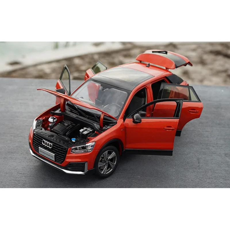 Imagine adding a stunning and highly detailed replica to your collection. This diecast 1:18 scale alloy Q2L SUV model, finished in a vibrant red color, commands attention with its sleek, modern design. Its realistic proportions, measuring approximately 29 centimeters long, 11 centimeters wide, and 11 centimeters high, bring the real vehicle to life on your shelves. The model features a bold front grille with black slats, sharply contoured headlights with clear lenses, and black accents around the bumper, wheel arches, and side mirrors. With detailed door seams, window lines, and multi-spoke alloy wheels with textured rubber tires, this model exudes authenticity. Perfect for display, collection, or gifting, it captures the essence of contemporary SUV styling.