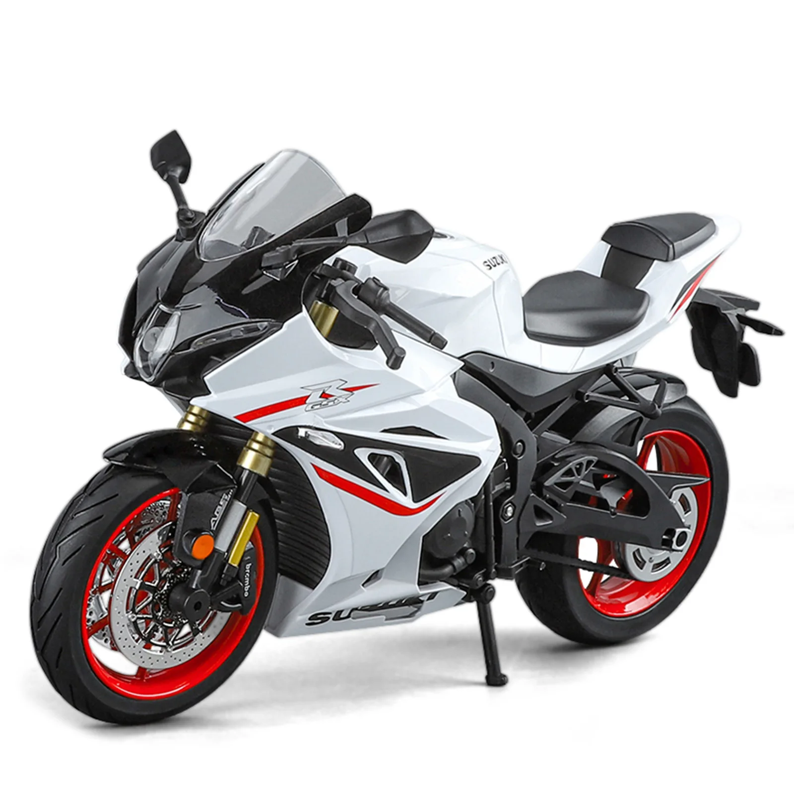 - High-quality textured surfaces on fairings, wheels, and handlebars provide an authentic feel, with detailed components such as brake discs, sprockets, and treaded tires enhancing realism.