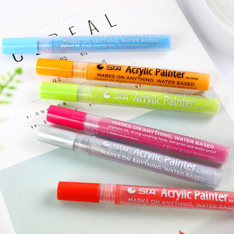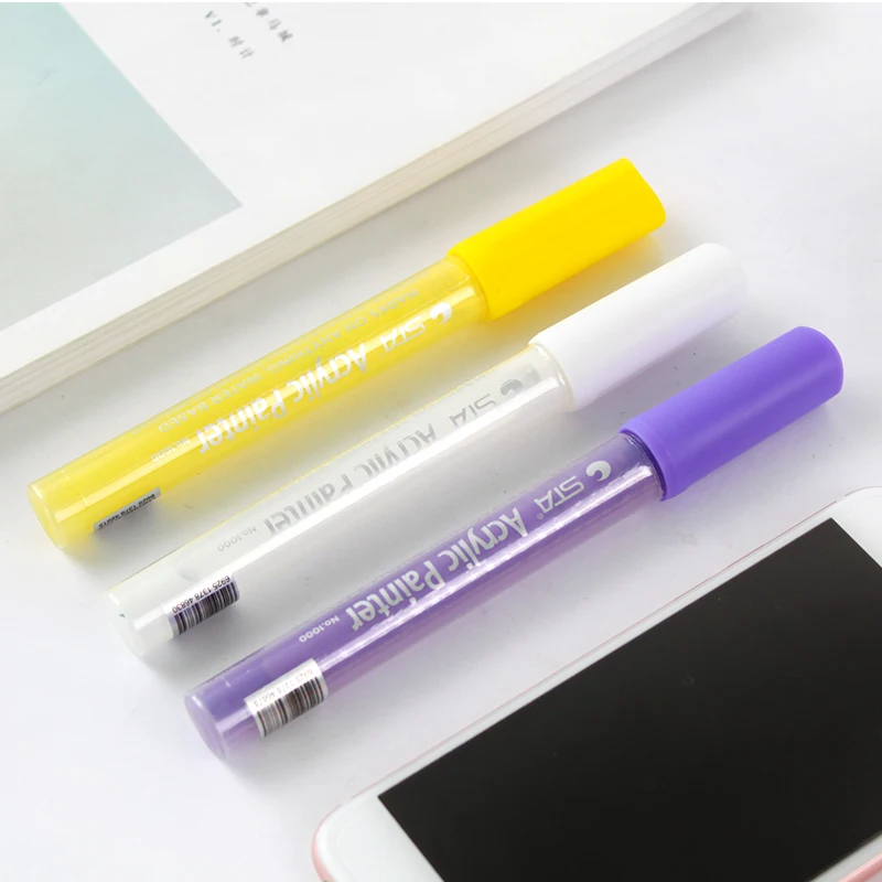 Transform your creative projects with this set of high-quality water-based acrylic art markers. Designed for artists and hobbyists alike, these markers boast a sleek, cylindrical body made of glossy, transparent plastic that showcases the colorful ink inside. The 2mm tips are perfect for detailed work, accents, and bold strokes. Featuring quick-drying, waterproof, and lightfast ink, these markers ensure your artwork remains vibrant over time. Odorless and non-toxic, they offer an environmentally friendly solution for all your artistic needs. Each marker is supplied individually in a clear plastic packaging, requiring a simple shake and press to activate the ink flow. Enjoy a smooth, consistent application with every stroke, whether you’re illustrating, designing, or crafting. They are ideal for diverse surfaces including paper, canvas, and more, making your artistic possibilities endless.