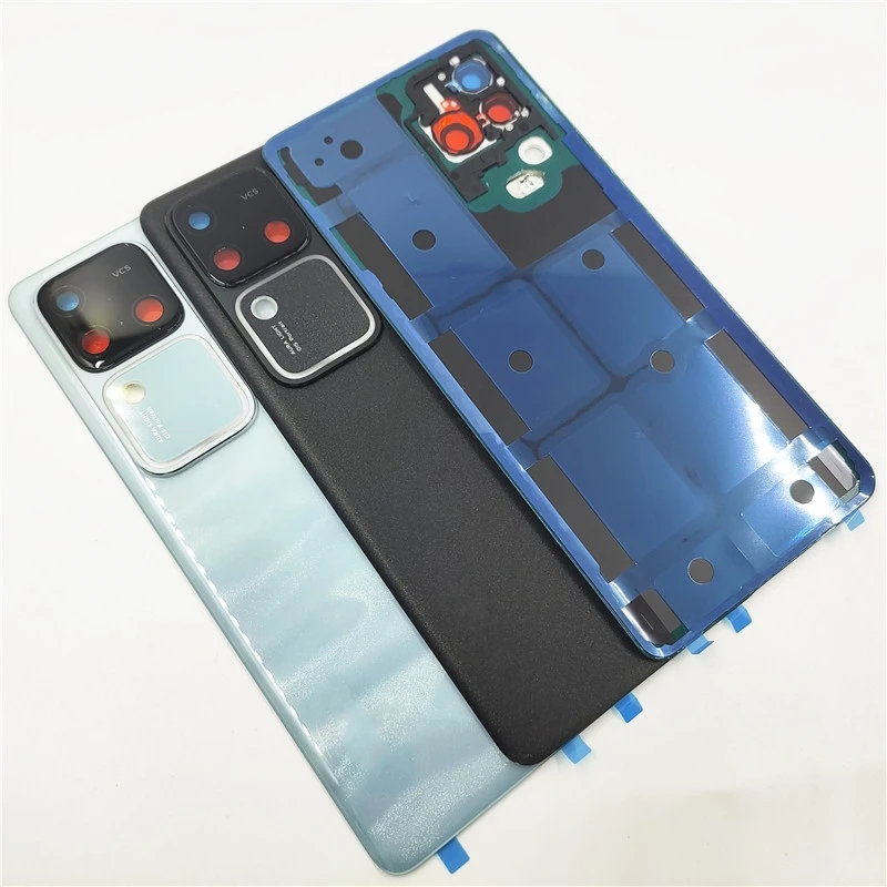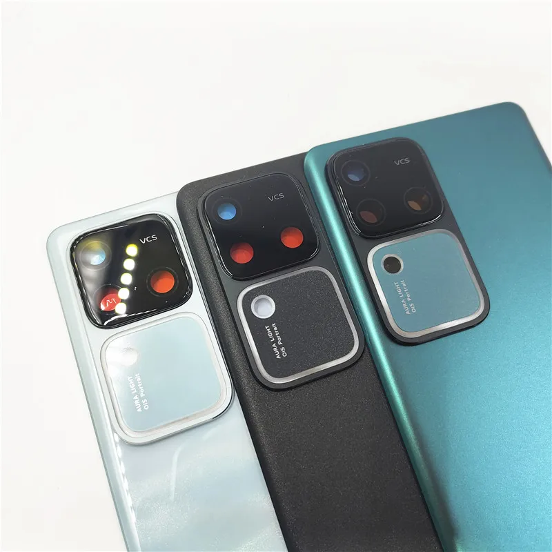 The Battery Back Cover for Vivo V30 Pro combines elegance and functionality in its design. Available in three eye-catching colors—light iridescent, black matte, and vibrant teal—this high-quality glass cover exudes durability while enhancing the aesthetic of your device. The smooth finish of the iridescent cover reflects light beautifully, while the matte black cover offers a sleek, premium look. The teal variant features rounded edges and a shiny finish, making it a standout choice. Each cover includes a rectangular camera lens cutout, making installation seamless. Upgrade your Vivo V30 Pro while maintaining its original charm.