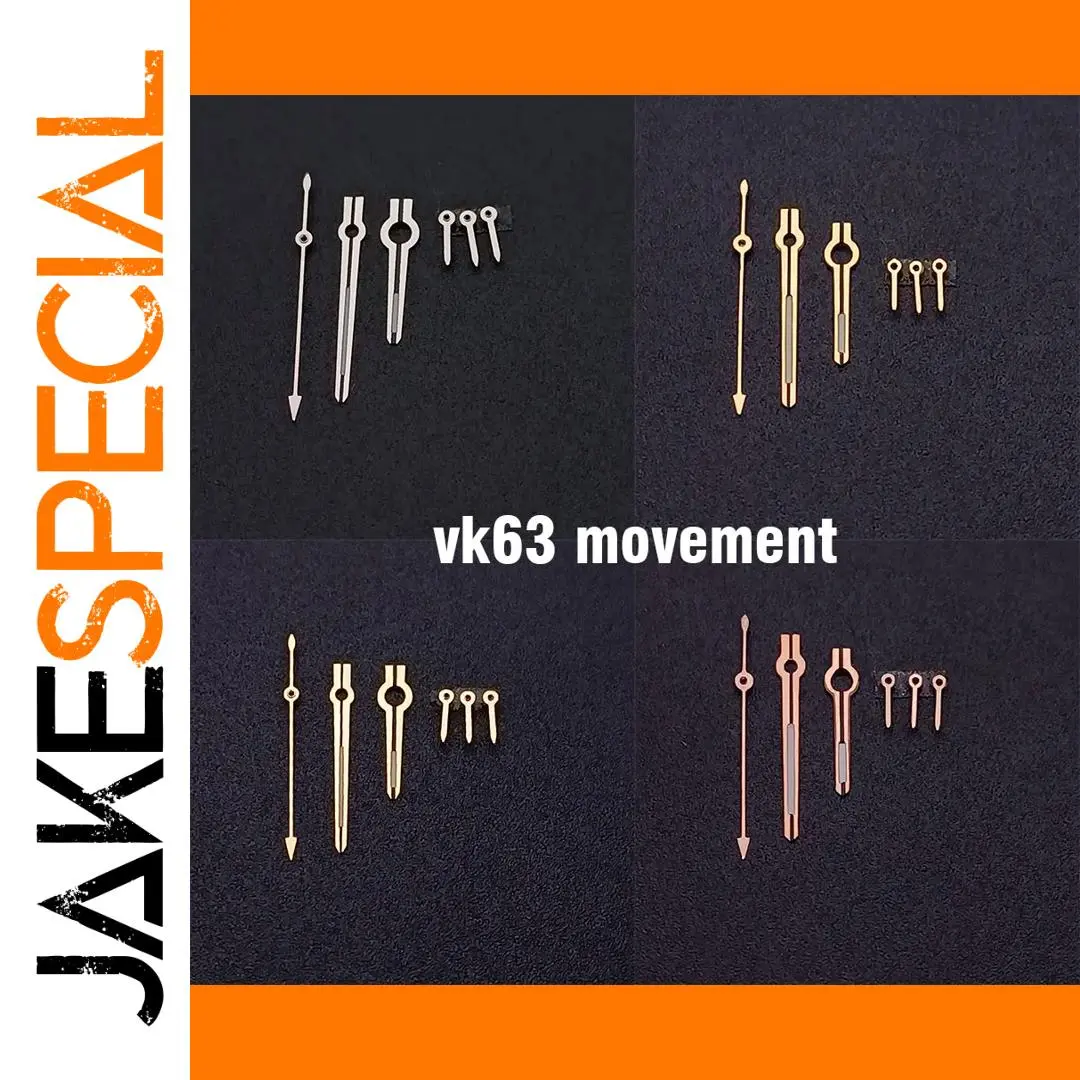 Transform your wristwatch with this high-quality, stylish watch hands set designed specifically for VK63 quartz movement. Available in four stunning metallic tones—silver, gold, rose gold, and reddish-silver—these hands add a sophisticated touch to any watch face. Crafted with polished, smooth finishes, each set includes a broad hour hand, a slender minute hand, and a pointed second hand with a small circle near the center, all perfectly proportioned for clarity and elegance. Crafted to fit seamlessly with compatible VK63 movements, these hands are ideal for replacing worn or damaged parts or customizing your watch for a sleek, modern look. The set's design emphasizes durability, style, and precision for a polished final result.