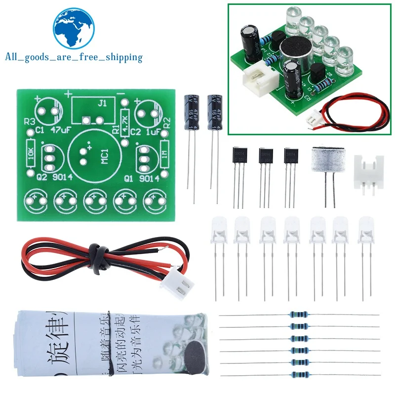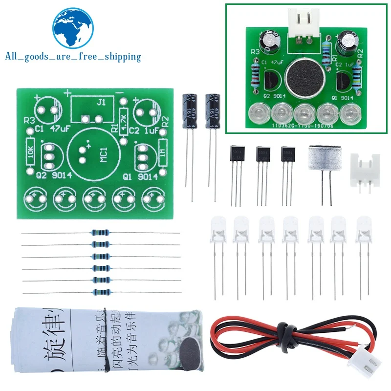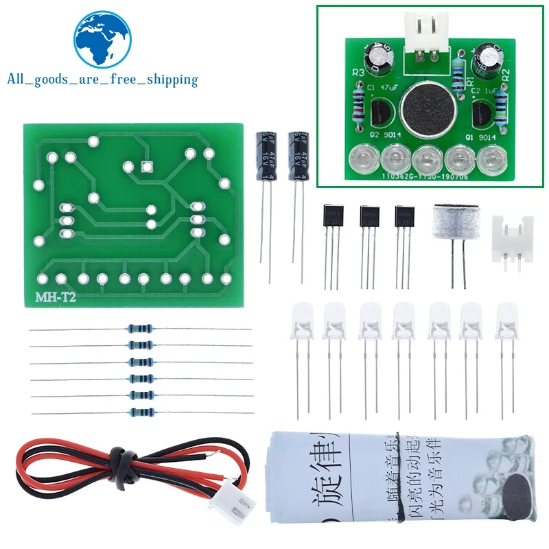 Experience hands-on control with this versatile voice-activated LED melody light module, operating between 3V and 5.5V and featuring an adjustable voltage regulator. Designed as a DIY kit, it’s perfect for switch and sensor applications compatible with STM microcontrollers, suitable for a wide temperature range of -40°C to +85°C. The package includes 1 to 3 pieces of the customizable “Model 1” module, which boasts a bright green PCB with neatly labeled connection points, clear LEDs, resistors with colorful bands, and sleek black transistors. Ideal for electronic enthusiasts seeking a reliable, multifunctional control solution for digital projects, it offers a seamless integration experience with durable, high-quality components.