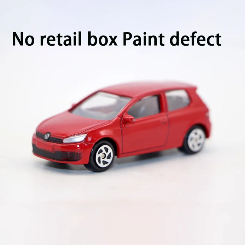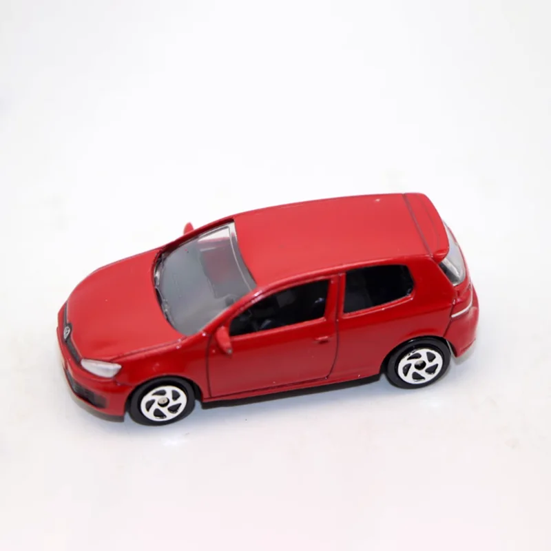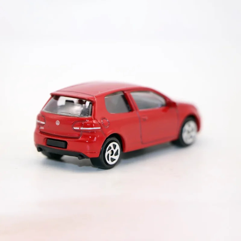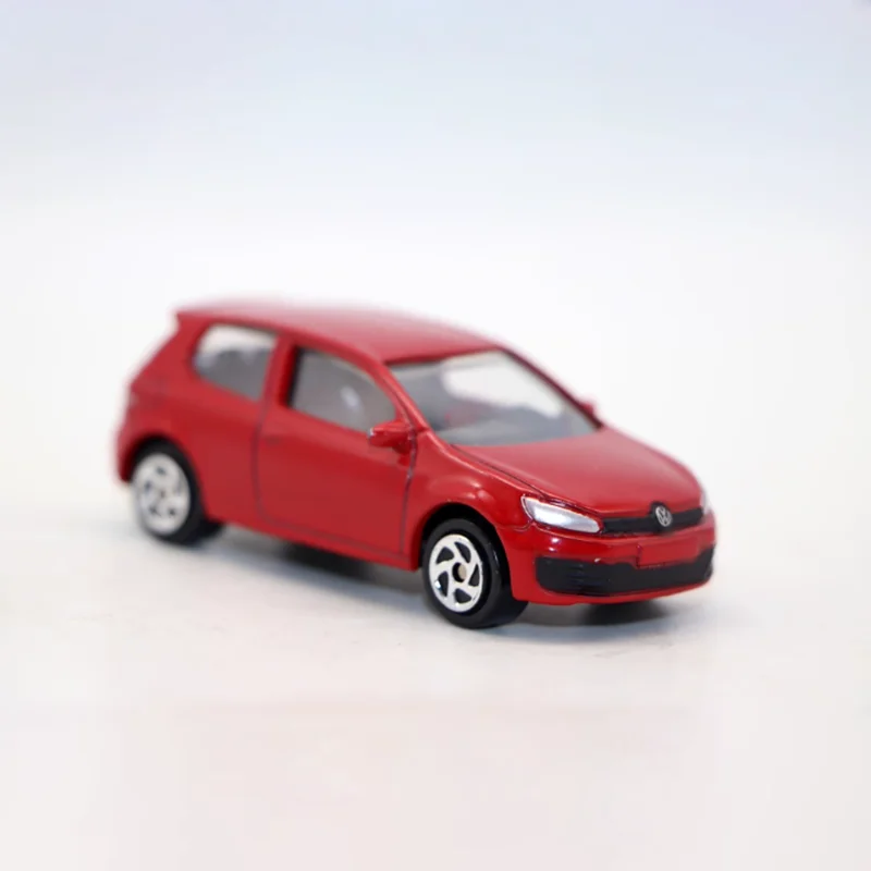Capture the sporty essence of the Volkswagen Golf GTI with this 1/64 scale diecast model, meticulously crafted from alloy and plastic. Featuring a vibrant red finish with a glossy, reflective surface, the model displays accurate design details, including a detailed front grille, narrow crystal-clear headlights, matching side mirrors, and simplistic five-spoke white hubcaps on black wheels. The rear showcases transparent red taillights and a clear rear window revealing a minimal interior. Please note, this collectible exhibits a paint defect, adding to its unique charm. Ideal for adult collectors, displays, or gifting, it measures with slight variation due to manual measurement and is not for children under 14 years old.