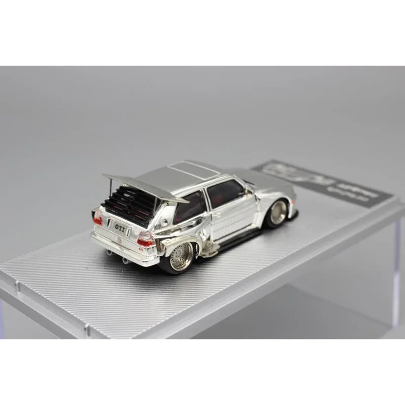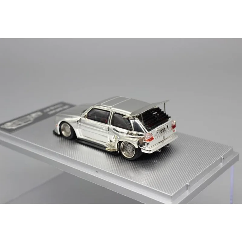 This 1:64 scale diecast alloy car model of the Volkswagen Golf GTI G60 features a sleek metallic silver finish, approximately 7 cm long. Crafted from alloy and ABS plastic, it boasts intricate detailing including realistic rearview mirrors, sculpted body contours, detailed headlights, grille, taillights, and multi-spoke wheels with realistic tread tires. Designed for adult collectors, this non-electronic miniature serves as an ideal display piece or gift. Its polished, detailed craftsmanship captures the sporty hatchback’s authentic features, making it a perfect addition to any collection or for showcasing your passion for classic automotive design.