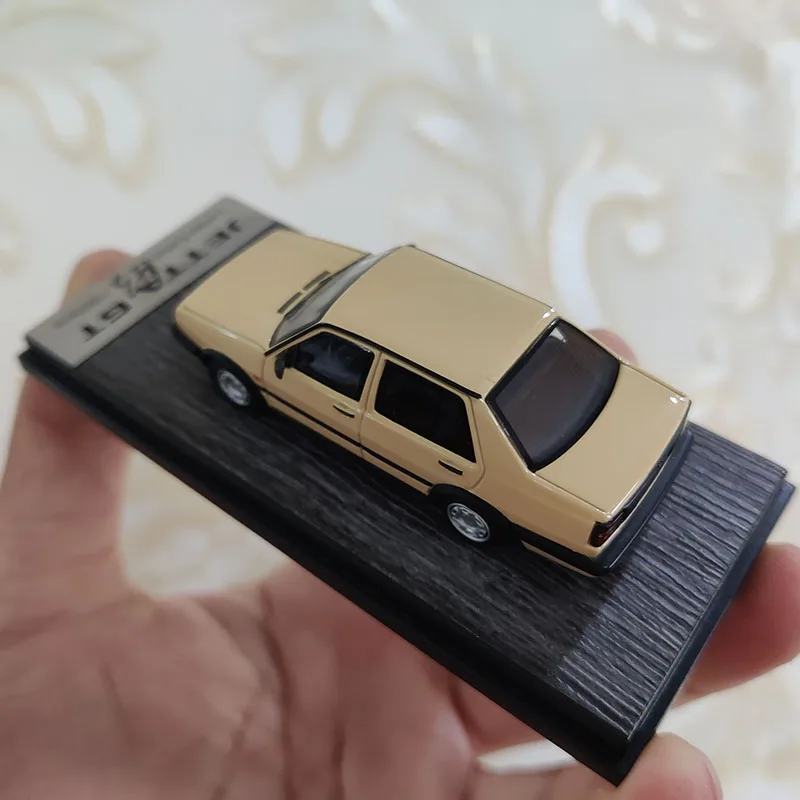 Picture this exquisite diecast alloy model of the Volkswagen Jetta GT, measuring approximately 7 centimeters. With its sleek, realistic body and subtle curves, it captures the true essence of the original vehicle. The soft beige or light tan paint color exudes elegance, while the detailed black trim enhances authenticity. Its dark plastic windshield and windows add depth, complemented by meticulously crafted front headlights and grille. The rear tail lights are seamlessly integrated, with realistic black and silver accents. Small silver rims with intricate tread tires complete the lifelike appearance. This highly detailed model embodies craftsmanship and style, making it a perfect decorative piece for display shelves, desks, or collections, giving you a sense of owning a miniature masterpiece.