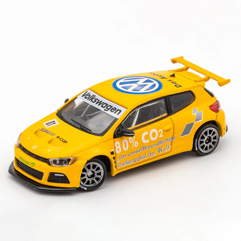 - The detailed decals include “Volkswagen R GmbH,” “ERDGAS,” “Scirocco R,” and sponsor logos, communicating an authentic racing aesthetic with vibrant, sharp graphics.