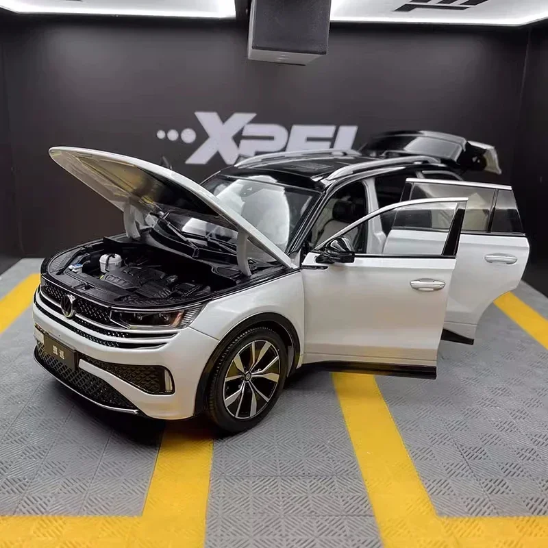 Experience the realism and craftsmanship of this stunning 1:18 scale diecast model of a Volkswagen T6 SUV. Finished in a sleek, pristine white, this detailed collectible captures the essence of the full-sized vehicle with precise design elements. The signature black honeycomb grille with the centered emblem, alongside rectangular LED headlights, creates a modern and sophisticated front profile. Black accents like side mirrors and mesh air intakes contrast beautifully with the white body, highlighting sporty details. The smooth contours and subtle hood lines add to its realistic appearance. Crafted from high-quality metal, this model combines durability and elegance, making it a perfect addition for collectors or enthusiasts looking to showcase a stylish and detailed replica of the iconic T6 SUV.