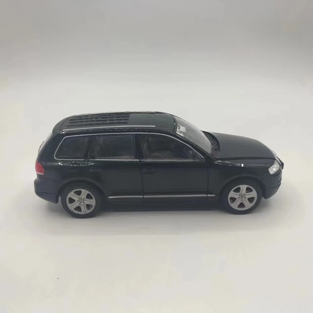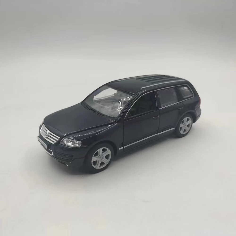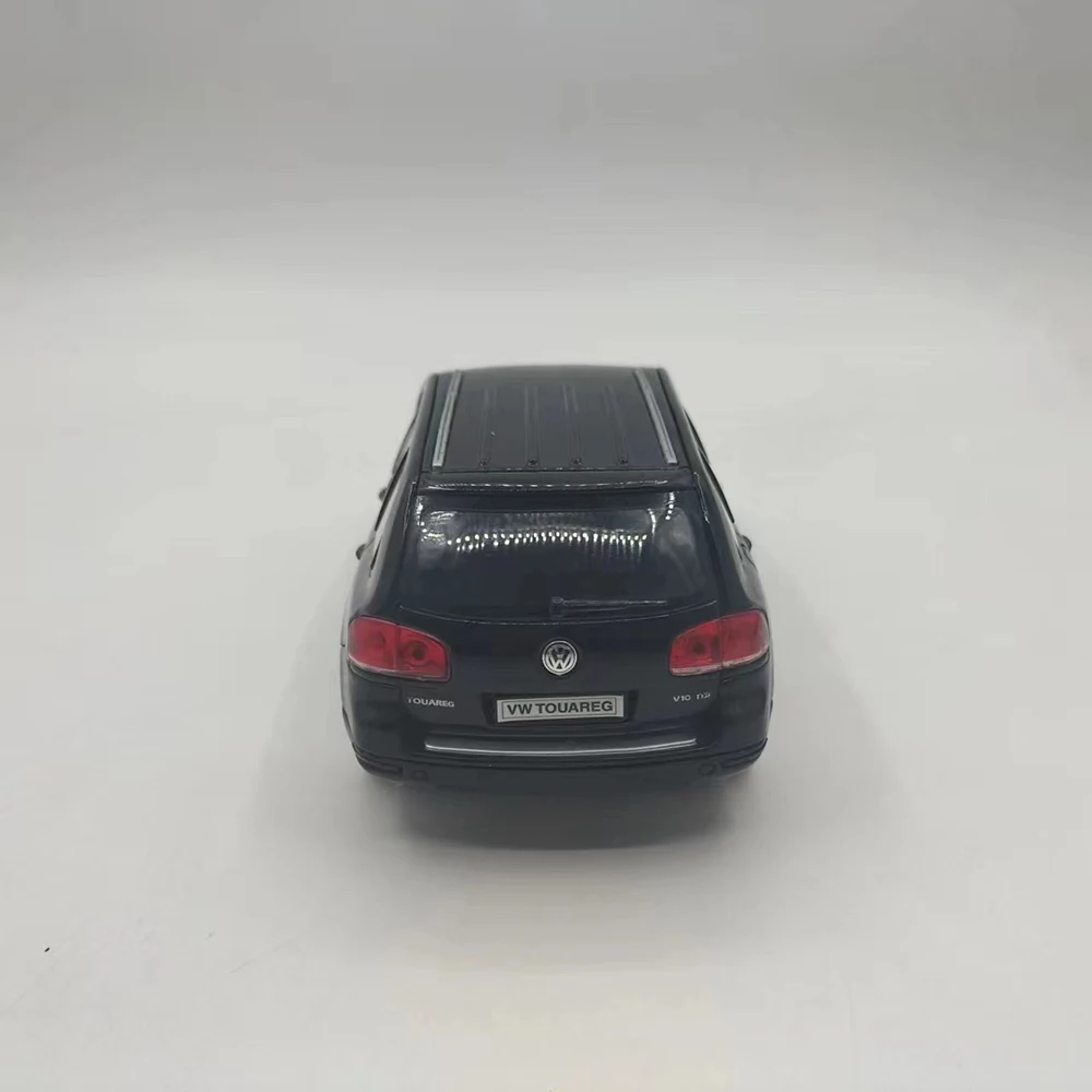 Experience the allure of this meticulously crafted miniature Volkswagen Touareg Station Wagon model. Designed at a 1:24 scale, it captures the sleek, refined lines of the original vehicle with an alloy body complemented by plastic details. The black finish offers a polished, eye-catching appearance, evoking a sense of sophistication. This collectible model features movable parts, including rotating wheels, opening front doors, and a functional front hood, allowing for dynamic display options. Despite minor surface flaws like rash or missing paint, the model maintains its realistic charm. Perfect for collectors and enthusiasts, you can imagine showcasing your own detailed vehicle display or gifting a passionate hobbyist with this refined replica. Enhance your collection with this compelling and authentic miniature.