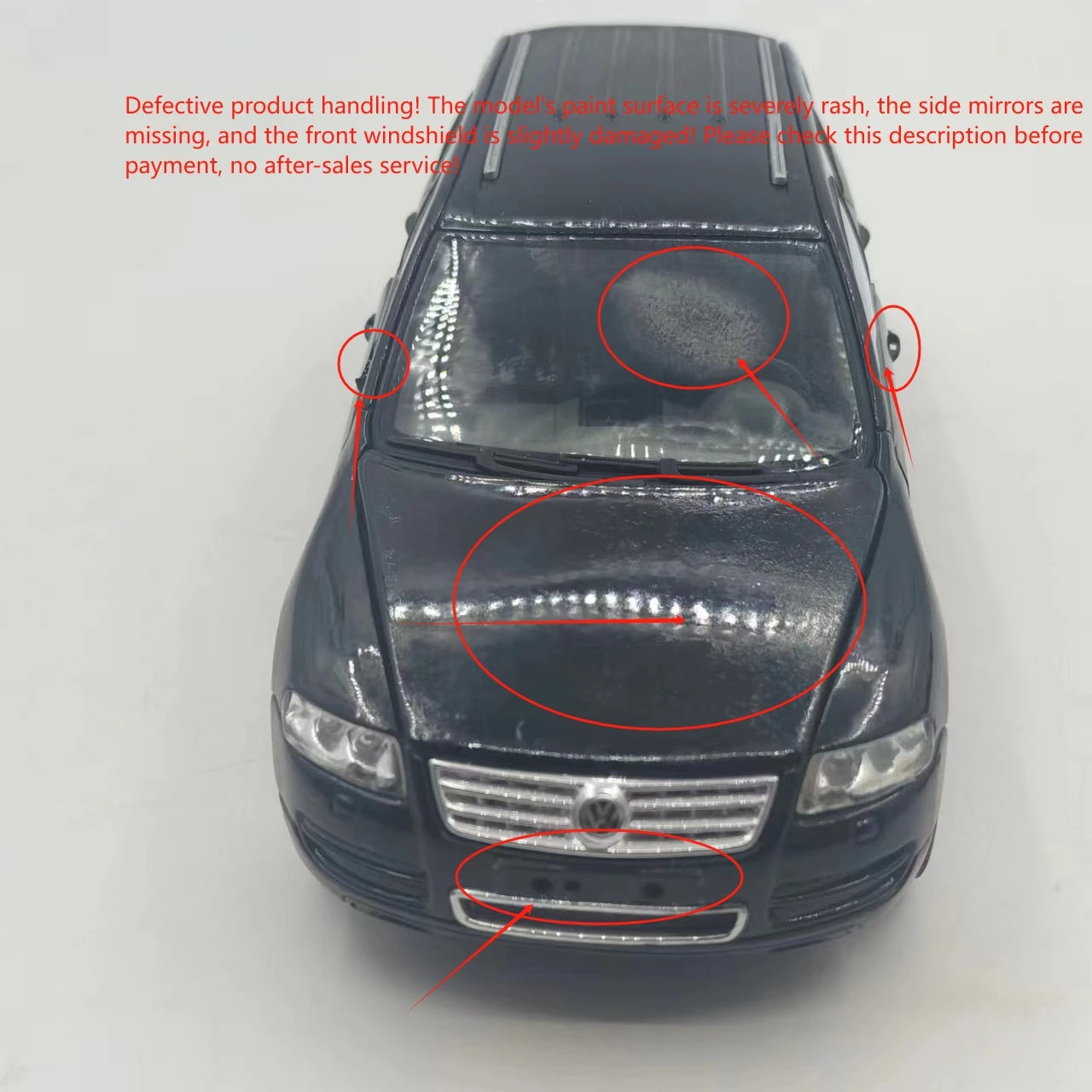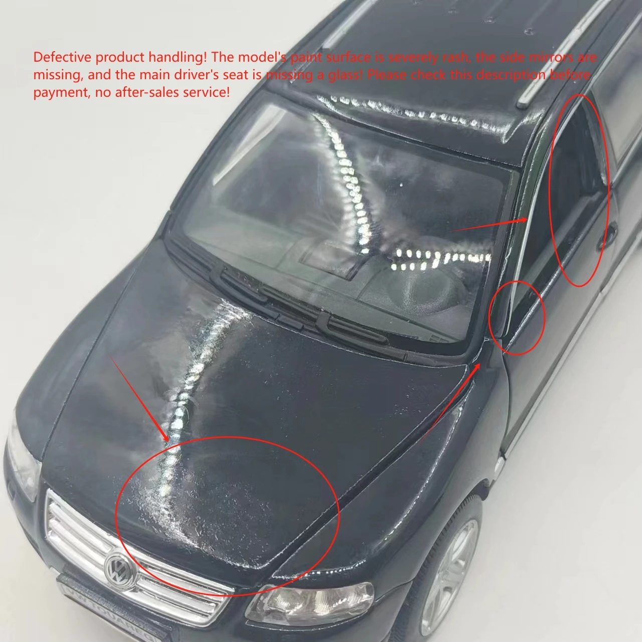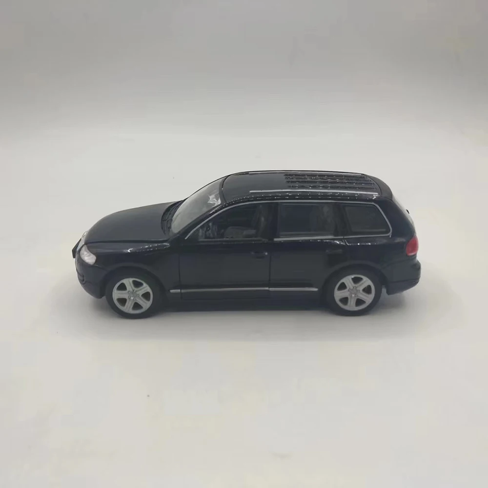 Experience the allure of this meticulously crafted miniature Volkswagen Touareg Station Wagon model. Designed at a 1:24 scale, it captures the sleek, refined lines of the original vehicle with an alloy body complemented by plastic details. The black finish offers a polished, eye-catching appearance, evoking a sense of sophistication. This collectible model features movable parts, including rotating wheels, opening front doors, and a functional front hood, allowing for dynamic display options. Despite minor surface flaws like rash or missing paint, the model maintains its realistic charm. Perfect for collectors and enthusiasts, you can imagine showcasing your own detailed vehicle display or gifting a passionate hobbyist with this refined replica. Enhance your collection with this compelling and authentic miniature.