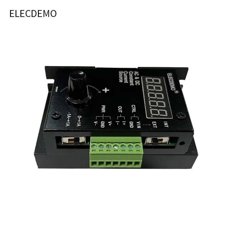 Experience precise current regulation with this high-quality voltage-controlled module, designed for versatile electronic applications. Encased in a sleek, compact black housing, it combines modern aesthetics with easy functionality. The digital display provides clear real-time output current readings, while the large ridged rotary knob allows for intuitive manual adjustments. Multiple green screw-type connectors ensure organized, secure connections for input power, output, and control signals. Whether you’re working on laser drivers, LED circuits, or sensor excitation, this module offers stable, reliable performance. Its robust build, combined with thoughtful design details such as reverse polarity protection and wide voltage compatibility, guarantees safe and efficient operation. Visualize seamlessly integrating this module into your setup, confident in its durability and precision.