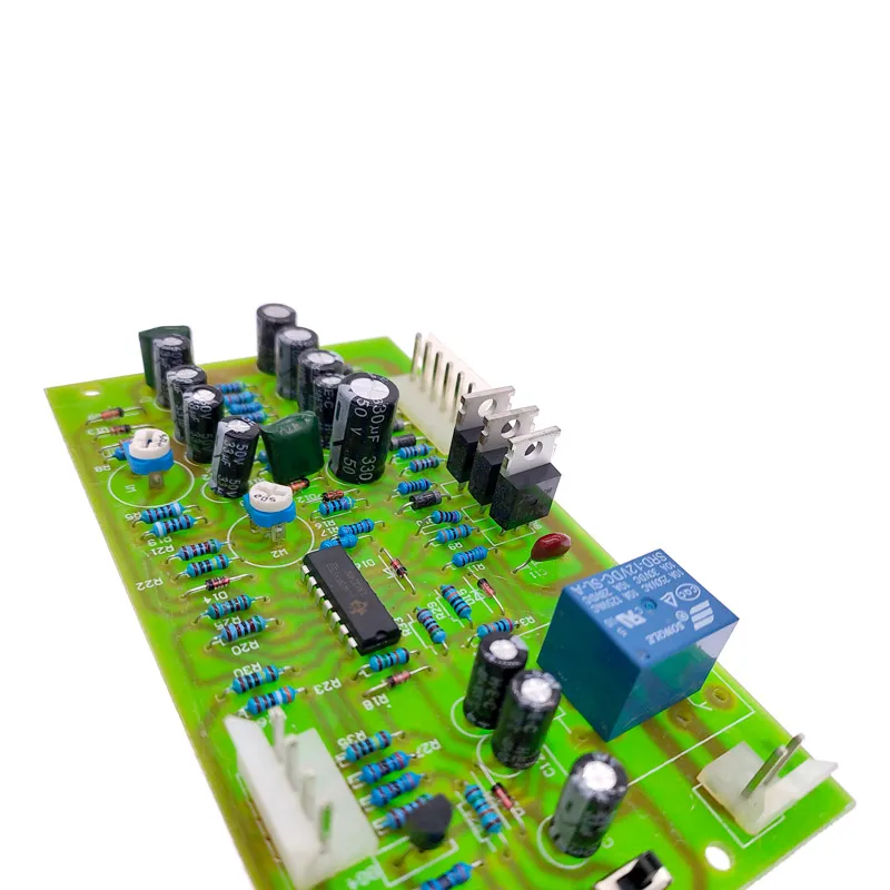 Upgrade your DC motor control with this high-quality Voltage Regulator Control Circuit Board, compatible with models such as YL26-136. Featuring a vibrant green base with a precise layout of electronic components, including a central black integrated circuit, blue resistors with color-coded bands, silver-topped electrolytic capacitors, and a prominent blue relay module, this PCB offers reliable regulation and optimized performance. The board also includes a white connector strip for easy wiring, a red LED indicator for status visualization, and various passive components for stable operation. Designed for adult collectors and enthusiasts, this circuit board ensures efficient motor control with a sleek, organized aesthetic.