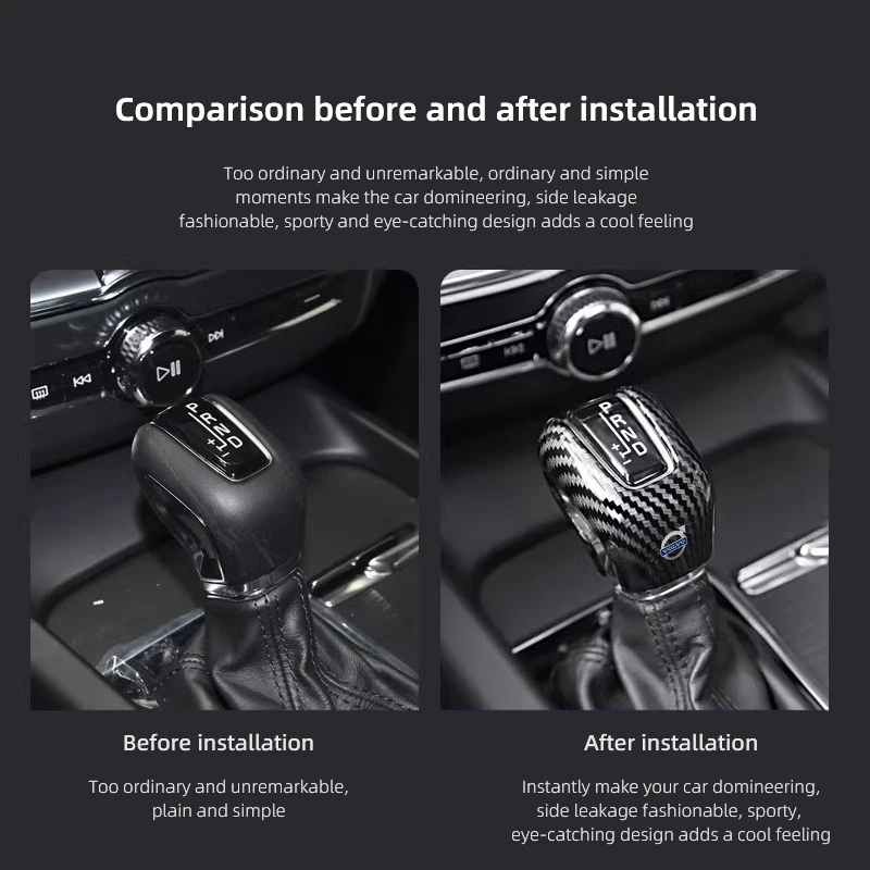 Transform your Volvo’s interior with this sleek, high-gloss carbon fiber gear shift handle cover. Designed specifically for models like XC90, V90, V60, XC60, V40, EC40, EX40, S80, S60, S90, C40, XC40, V70, XC70, C30, C70, and EX90, it adds a sporty and refined touch. Made from eco-friendly, soft, and durable material, it offers a comfortable, non-slip grip while protecting your gear shift from scratches, dust, and damage. The seamless fit and modern aesthetic enhance your vehicle interior effortlessly. No need for tools—install it directly and enjoy a stylish upgrade that resists fading and extreme temperatures. Elevate your driving experience with this premium accessory, combining function with sophisticated design.