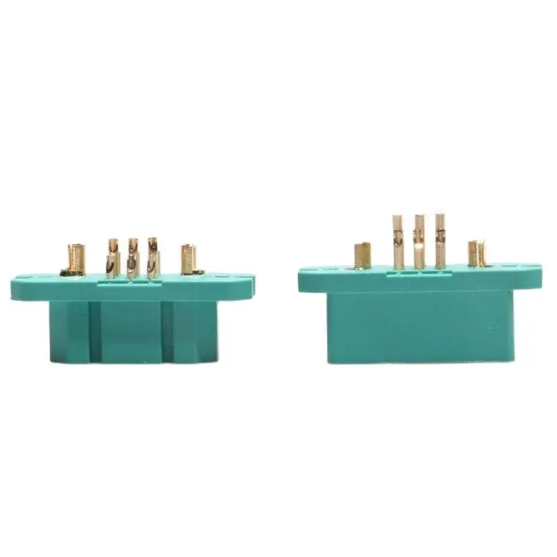 Experience reliable connections with this set of five pairs of VTOL 9+2 connector servo signal wire adapters, expertly designed for RC drones and fixed-wing aircraft. These compact, elegant connectors are crafted from durable teal-colored PA plastic housings, complemented by shiny gold-plated brass contacts for superior conductivity and corrosion resistance. Each pair supports high-current applications, with the large connector rated at 30A capacity and 60A instantaneous current, making them ideal for demanding take-off, wind resistance, and landing operations. The precise design ensures secure, plug-and-play connections, reducing connection failures. Their flame-retardant UL94 V0 rating, temperature tolerance from -20°C to 120°C, and robust lifespan of 1000 connect/disconnect cycles guarantee safety and longevity for your high-performance RC setups.