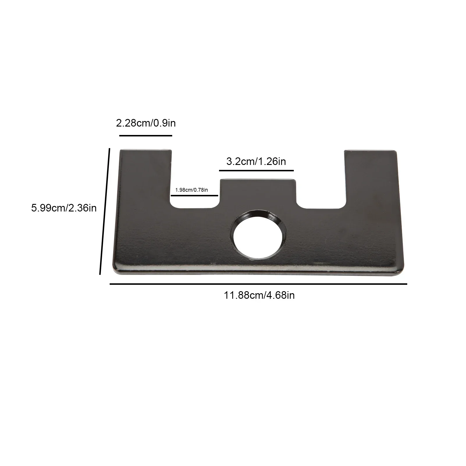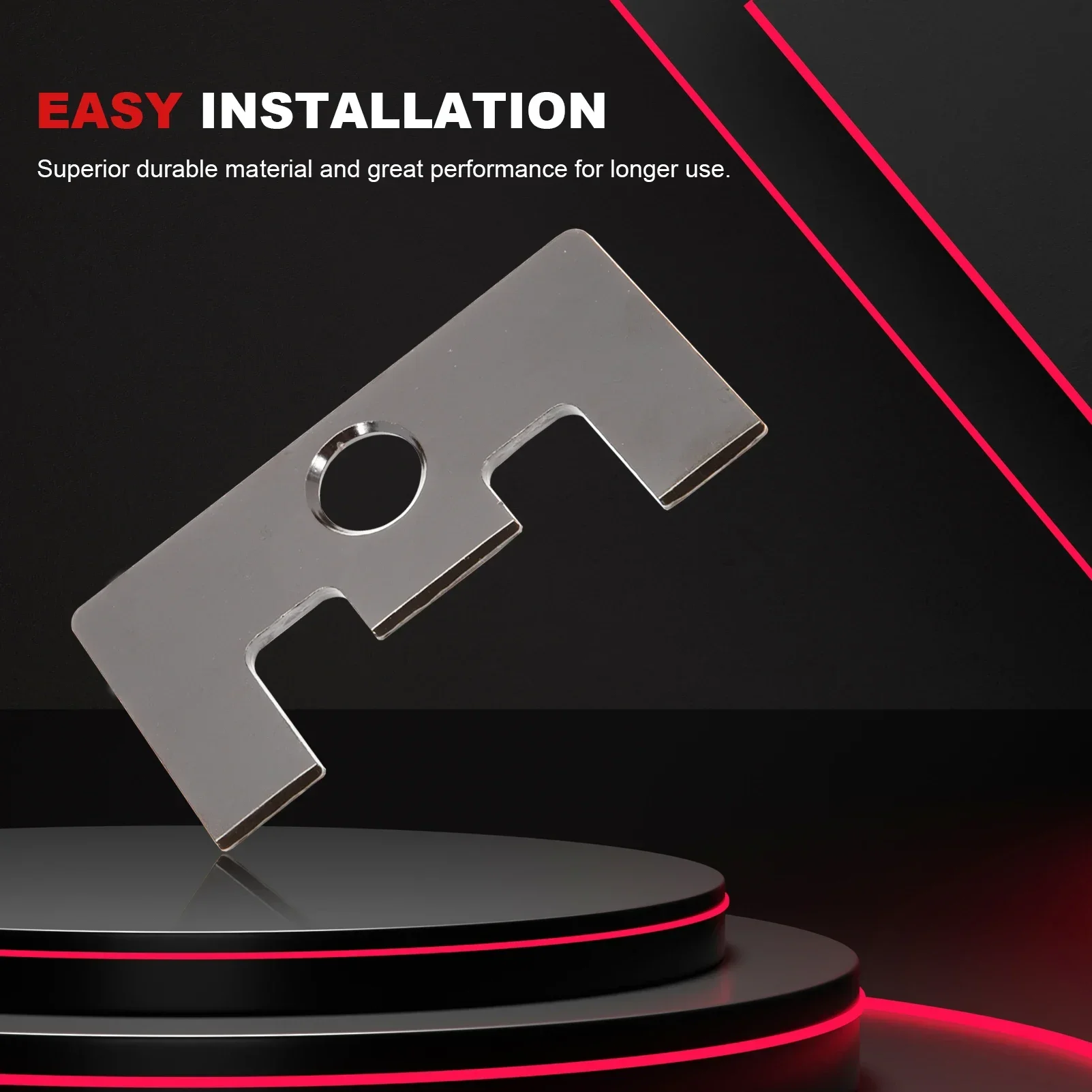 - A black metal camshaft lock plate with a precise circular central opening ensures secure camshaft positioning during timing procedures.