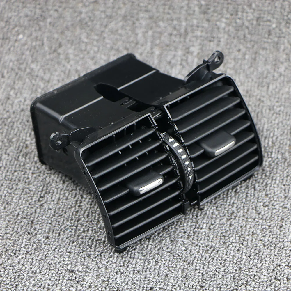 The Rear Center Armrest Console Air Vent Outlet Assembly is expertly engineered for VW Passat B6 (2006-2011) and Passat CC models. This innovative design, primarily in sleek black with chic gray accents on the adjustable air vent slats, ensures seamless integration into your vehicle's interior. The circular control dial allows you to easily customize airflow, enhancing passenger comfort. Crafted from durable plastic, this assembly promises long-lasting performance under various environmental conditions. Its compact dimensions make it a perfect fit, offering both practicality and style. Imagine how it will elevate your driving experience when it’s elegantly integrated into your vehicle.