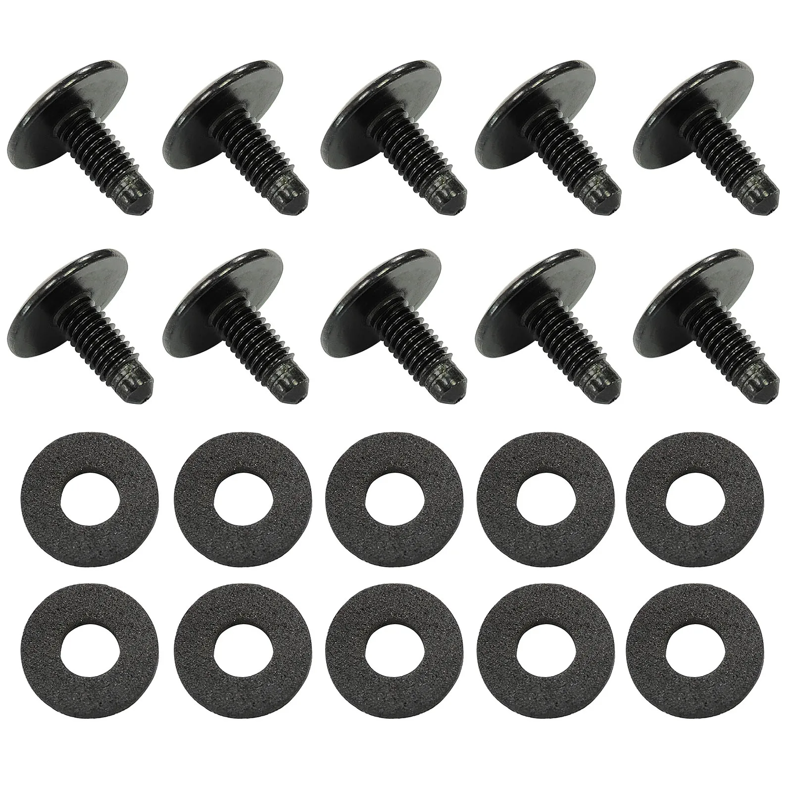 This set of ten black metal roof rack blanking bolts is precisely engineered for VW Transporter models T5, T6, and T6.1, manufactured from 2003 to 2021. Crafted for an impeccable fit, these bolts replace worn or lost originals, ensuring a secure installation for roof racks. The bolts feature a sleek matte finish that seamlessly blends with your vehicle's aesthetic while preventing glare. Each bolt is designed with a cylindrical shaft, prominent spiral threading, and a textured, flat circular base for enhanced grip during installation. With an item weight of 0.085 kg, these robust components add both functionality and style to your VW Transporter.