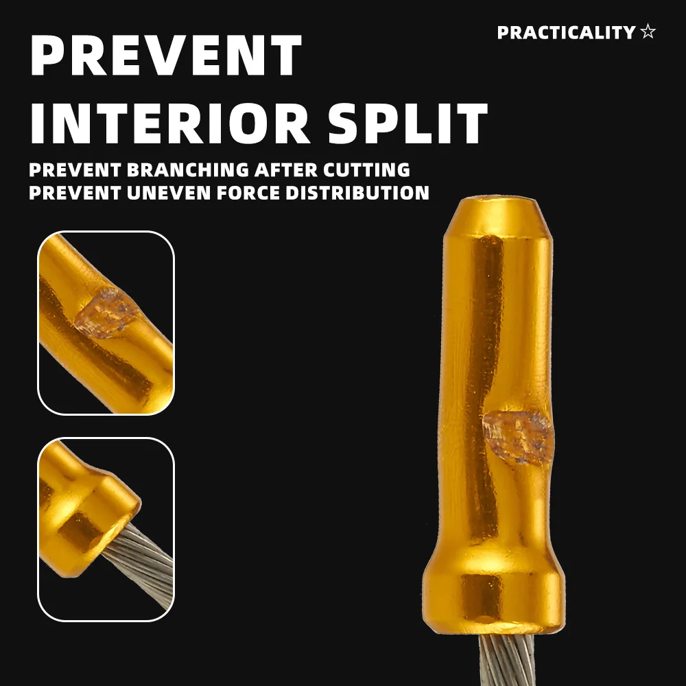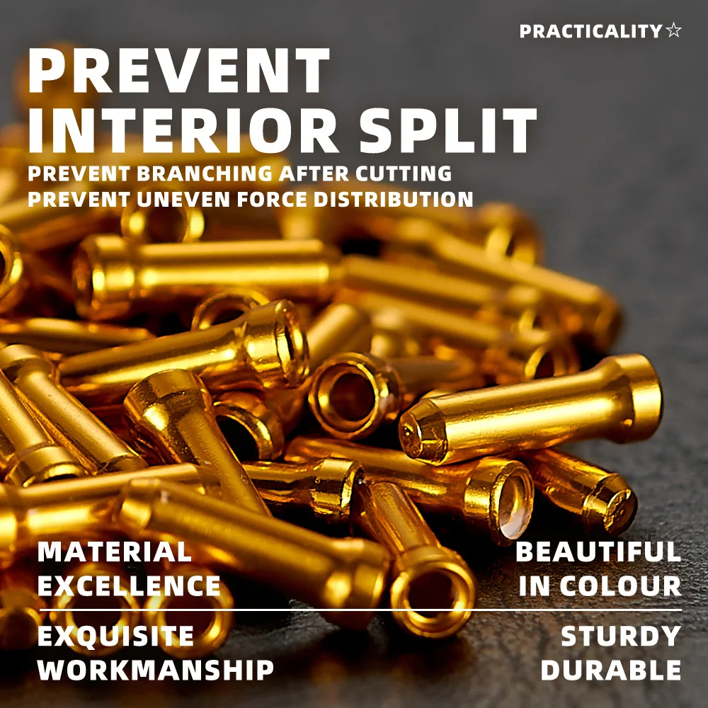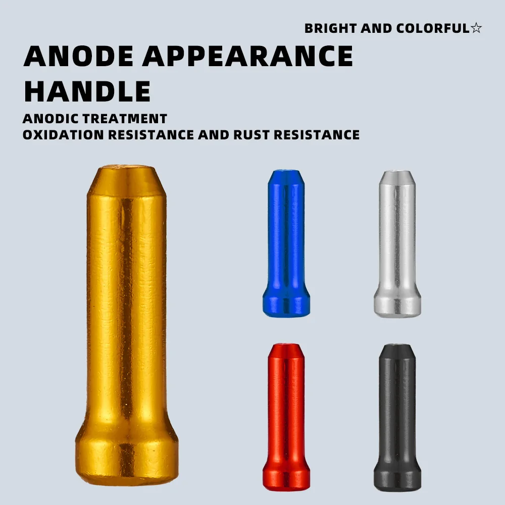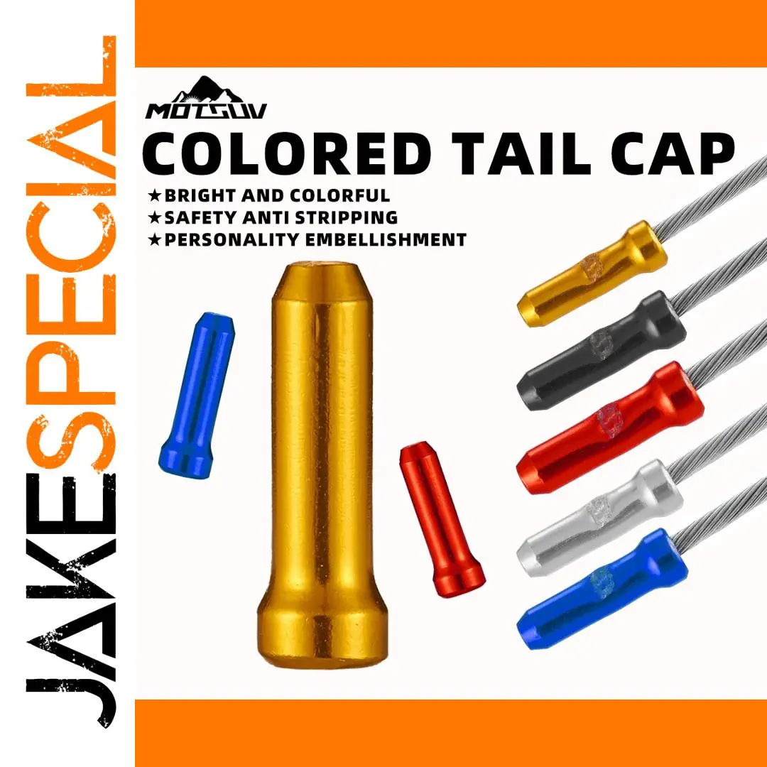 Enhance your bicycle’s cable management with these aluminum tail end caps, designed for brake and shift wires. Available in vibrant colors—black, blue, golden, red, and silvery—in packages of 10 or 20 pieces, these crimped line caps securely finish wire ends, providing durability and a customized look. Crafted from high-quality aluminum with a smooth, shiny metallic finish, these caps feature a slightly tapered, rounded tip and a wider base for easy crimping. Perfect for cyclists seeking a stylish, functional upgrade, they ensure reliable cable protection and identification, adding a polished touch to your bike’s appearance and performance.