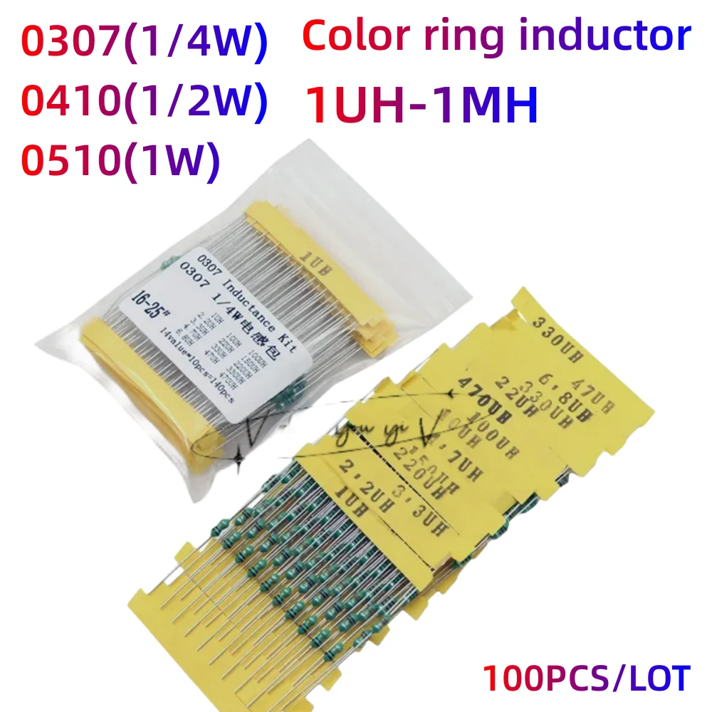 - Each inductor features a small, cylindrical shape with a sleek metallic core and vibrant color rings that indicate inductance value from 1μH to 1mH clearly.