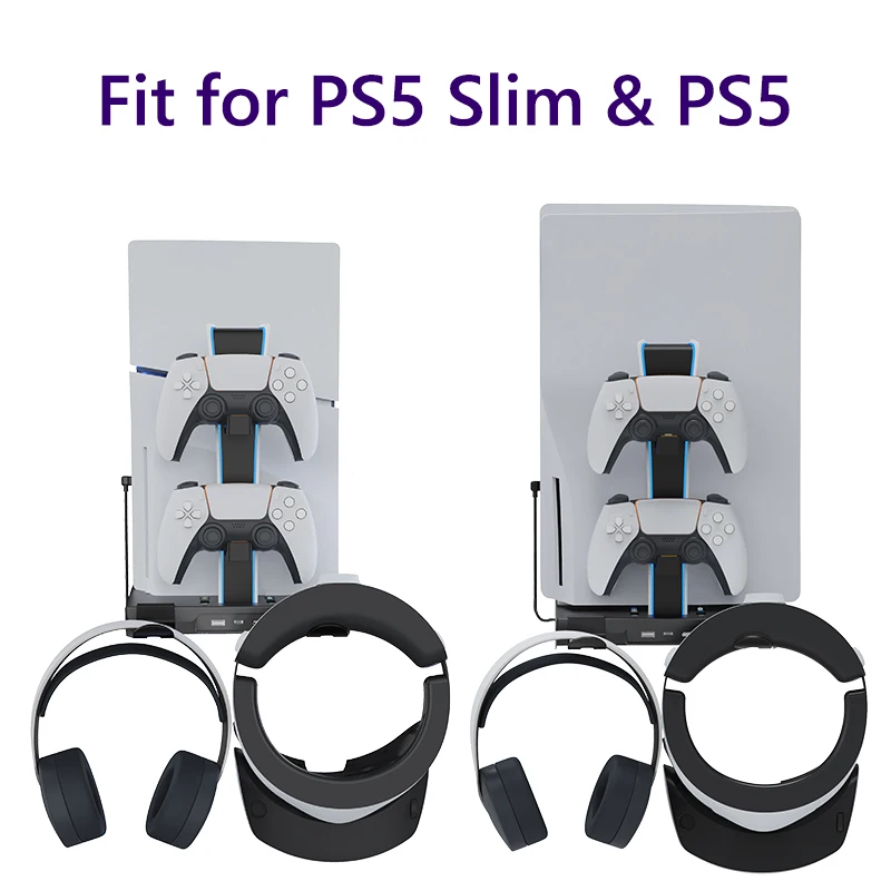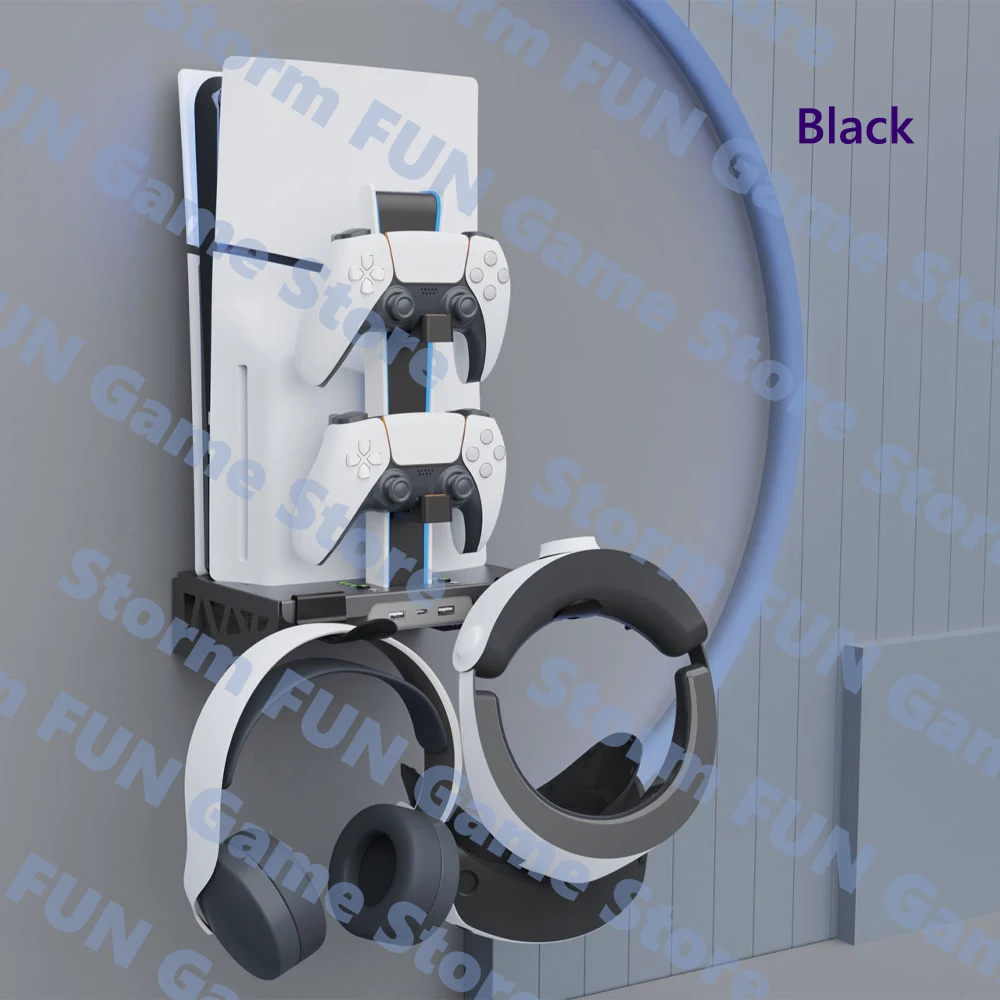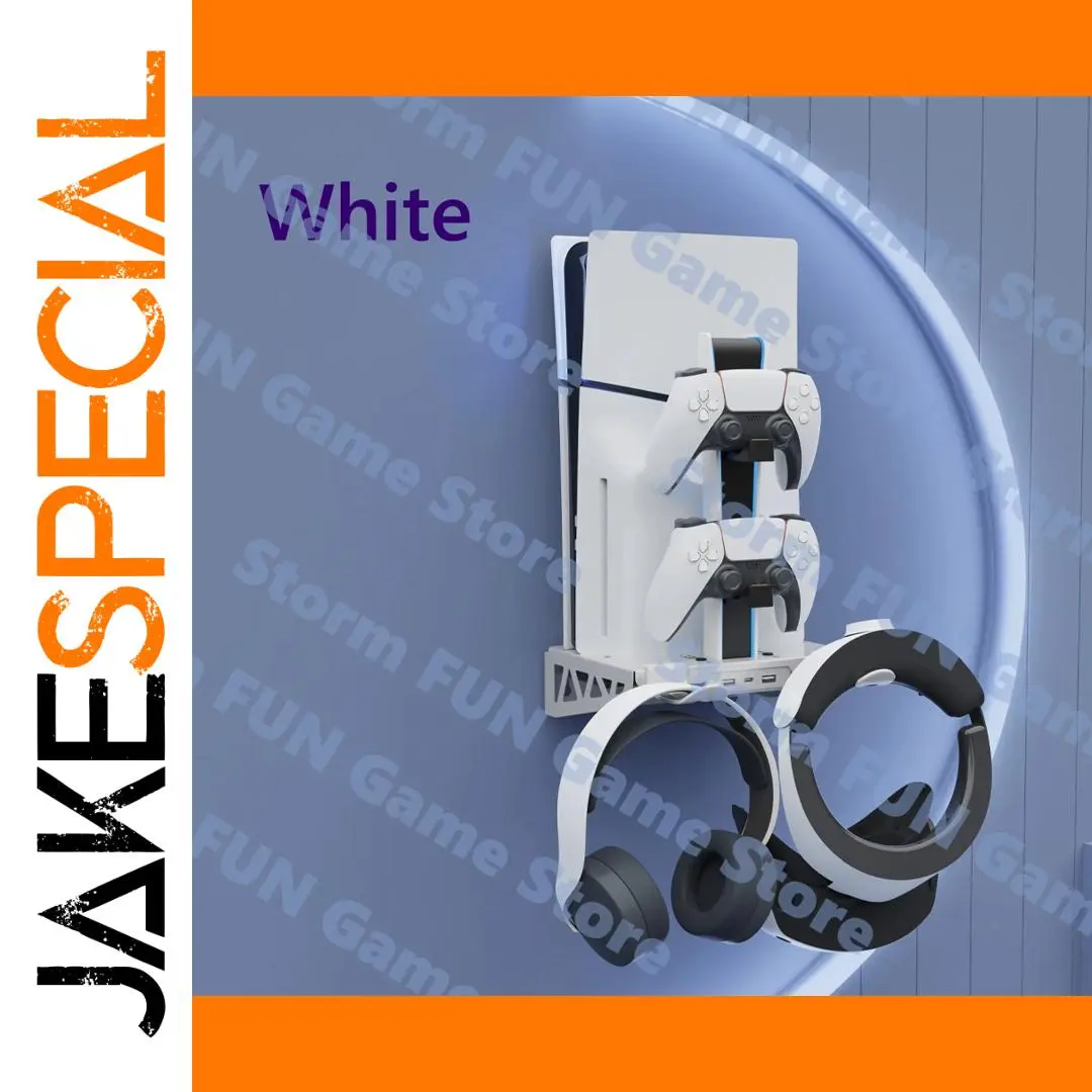 Enhance your gaming setup with this Wall Mount with Cooling Fan Charger for PS5 Slim. Designed for optimal performance, it provides a vertical stand for your PlayStation 5 controller, keeping your console organized and stylish. The built-in cooling fan helps prevent overheating during long gaming sessions, while the charger ensures your controllers are always ready to go. Crafted with high-quality materials, this accessory is easy to install and compatible with Sony PlayStation 5 and PS5 Slim models. Elevate your gaming experience by keeping your console and controllers neat, functional, and well-ventilated, making your gaming environment more efficient and enjoyable.