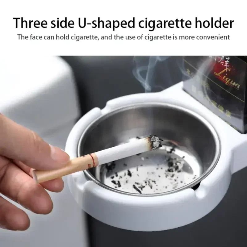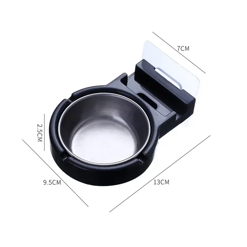 Imagine elevating your space with this sleek, modern ashtray that perfectly combines functionality and style. Crafted from durable 304 stainless steel with a smooth, reflective surface, it radiates minimalist sophistication. The white or black polypropylene outer shell adds a clean, neutral touch, seamlessly fitting into any contemporary home or office setting. Its compact round design, measuring 13 cm in diameter and 9.5 cm in height, fits snugly on your wall without taking up space. Features like the top hollow groove for lighters and cigarette cases, along with cigarette rests on three sides, make smoking and disposal effortless. Easy to install with a no-punch, adhesive mounting system, it ensures safety, hygiene, and durability for everyday use.
