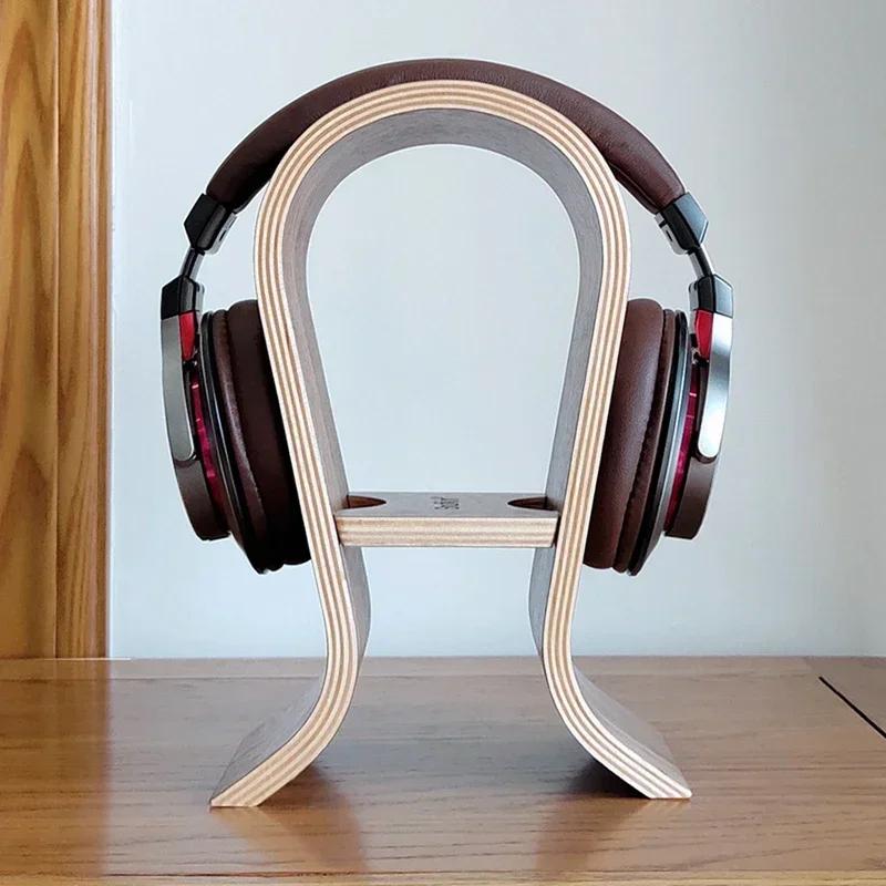 Enhance your workspace with this elegant wooden headphone stand, available in 10 cm or 12 cm widths, featuring a smooth walnut finish. Its sleek, S-shaped design provides secure support for your office or gaming headphones while seamlessly incorporating a built-in cellphone holder for added convenience. Crafted from a single piece of natural wood, it offers a minimalist aesthetic that combines organic warmth with modern simplicity. Ideal for organizing your desk, this sturdy stand is perfect for showcasing your headphones and phone in a stylish, clutter-free manner. Note that the appearance and color may vary due to ongoing upgrades, ensuring a unique piece tailored to your modern setup.