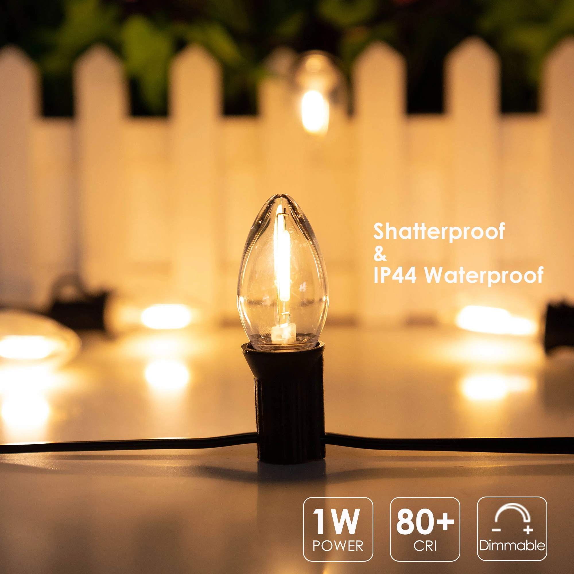 - Constructed from durable PET plastic, the bulbs are shatterproof, resistant to yellowing over time, and maintain their clear appearance for years, withstanding outdoor elements comfortably.