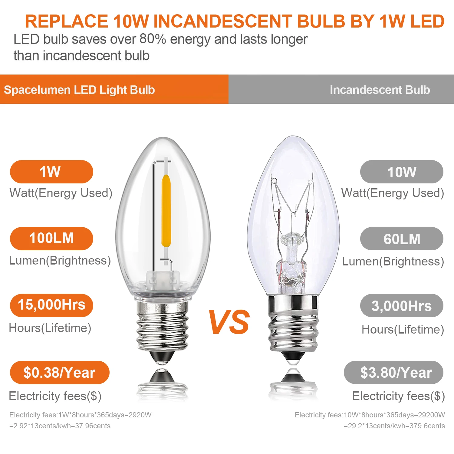 - Powered by 110V or 220V AC, these dimmable bulbs consume only 1W, providing brightness equivalent to a 7W incandescent bulb, saving you up to 90% energy and reducing costs.