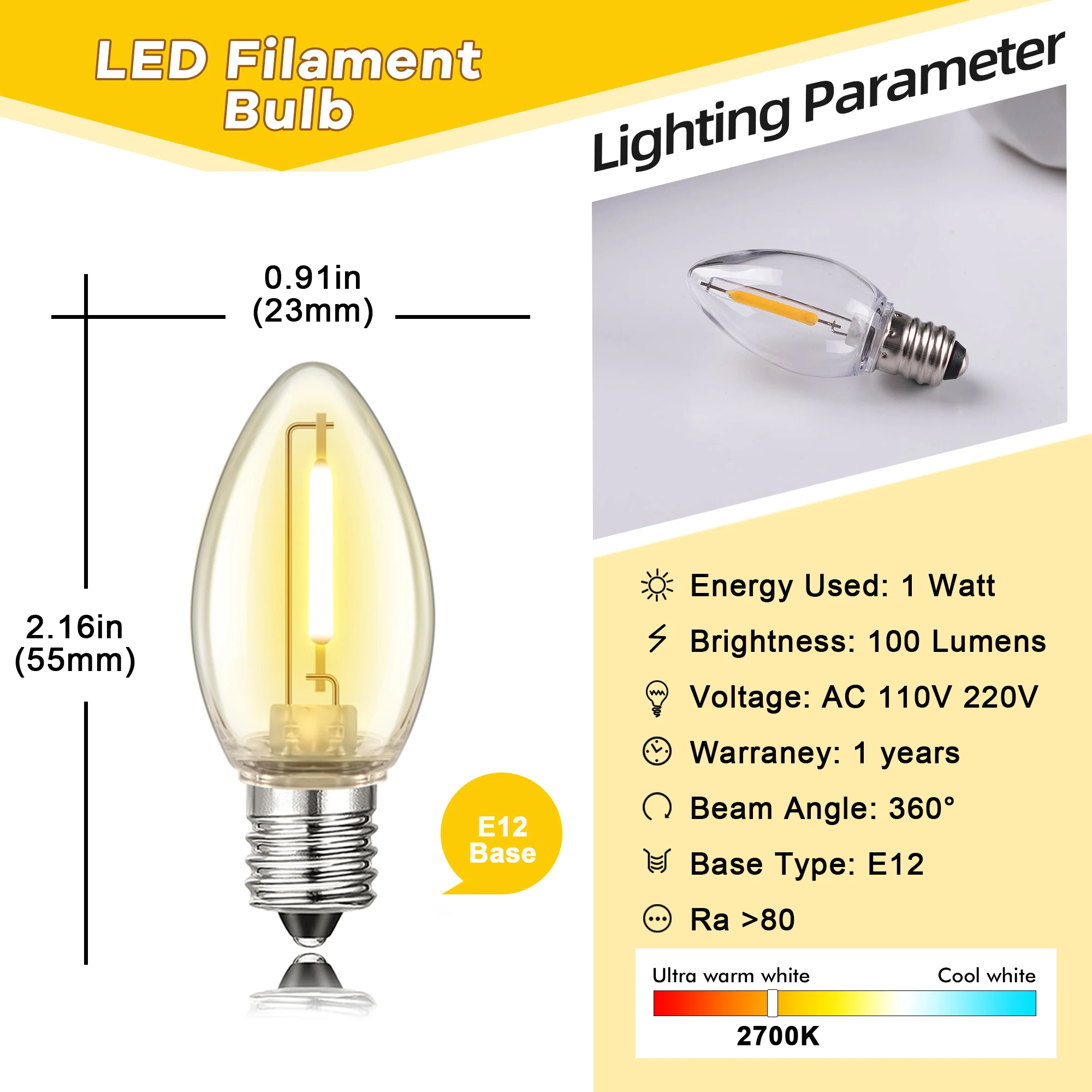 - The E12 candelabra screw base makes them compatible with a variety of fixtures, ideal for string lights, chandeliers, and decorative lanterns, enhancing any decorative setting seamlessly.