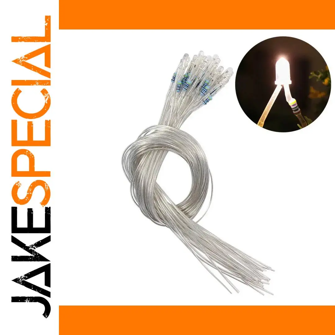 - 20 pre-wired 3mm warm white glass LEDs with internal visible components, ideal for adding authentic lighting to miniature scenes and models.