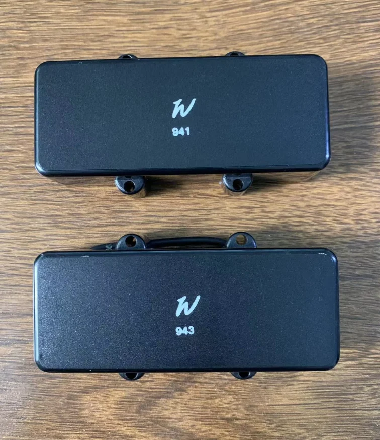 - The package includes two active pickups, model 941 and 943, featuring a sleek black matte finish for a modern aesthetic on your bass guitar.