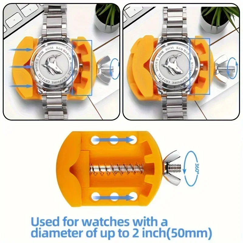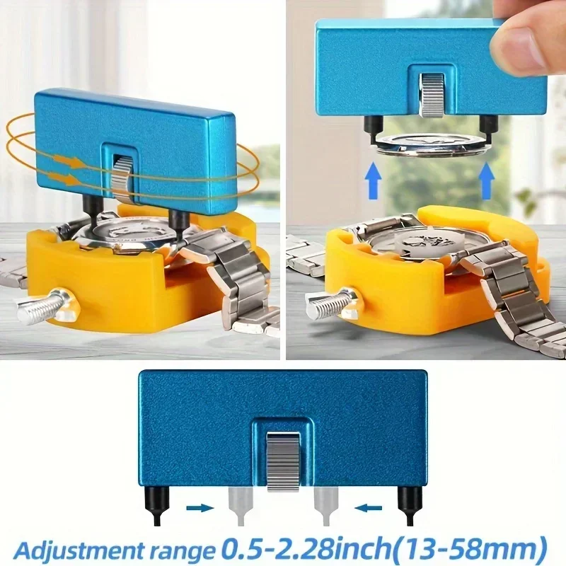 Easily access and replace watch batteries with this versatile 3-in-1 watch repair kit. Featuring an adjustable back opener, a secure repair holder, and a wrench for removing case covers, it ensures safe and precise maintenance of your watch, including models like the FancyWrist series. Crafted from durable steel and ABS plastic, this compact blue tool set is perfect for both beginners and experienced enthusiasts. Its user-friendly design allows you to handle watch back cases with confidence, making battery replacement a quick and efficient task. Whether you’re performing routine maintenance or a detailed repair, this kit provides all the essential tools in one convenient package.