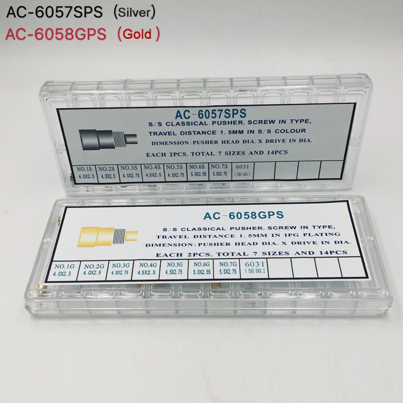 Discover the ultimate solution for your watch repair needs with this Screw-In Type Watch Crown Chronograph Button Watch Pusher Accessories Kit AC-6057SPS. Crafted with precision from high-quality steel, this kit features a sleek silver tone that adds a professional touch to your toolkit. It includes a comprehensive selection of 14 meticulously arranged watch crowns, organized by size, along with 20 durable C rings and a clear plastic case. Whether you're a seasoned watchmaker or a hobbyist, this kit ensures you'll have the right parts at your fingertips to replace broken components seamlessly, keeping your timepieces in perfect condition.