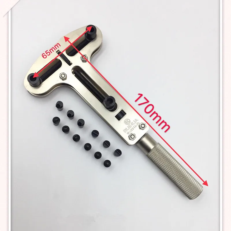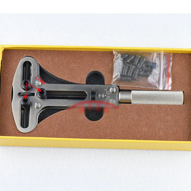 This Watch Repair Tools Kit is designed to offer precision and reliability to both professional watchmakers and hobbyists. Featuring a robust metallic watch case opener with a sleek silver finish, this tool not only looks professional but provides durability during use. The opener boasts adjustable prongs, capable of accommodating watch cases up to 80mm, ensuring versatility for all your watch repair needs. With 12 interchangeable bits housed neatly within a vivid yellow storage case, this kit promotes ease of use and portability, helping you visualize effortlessly completing watch repairs right at home or on the go.